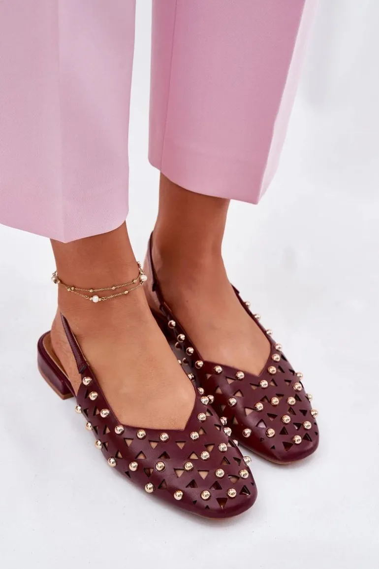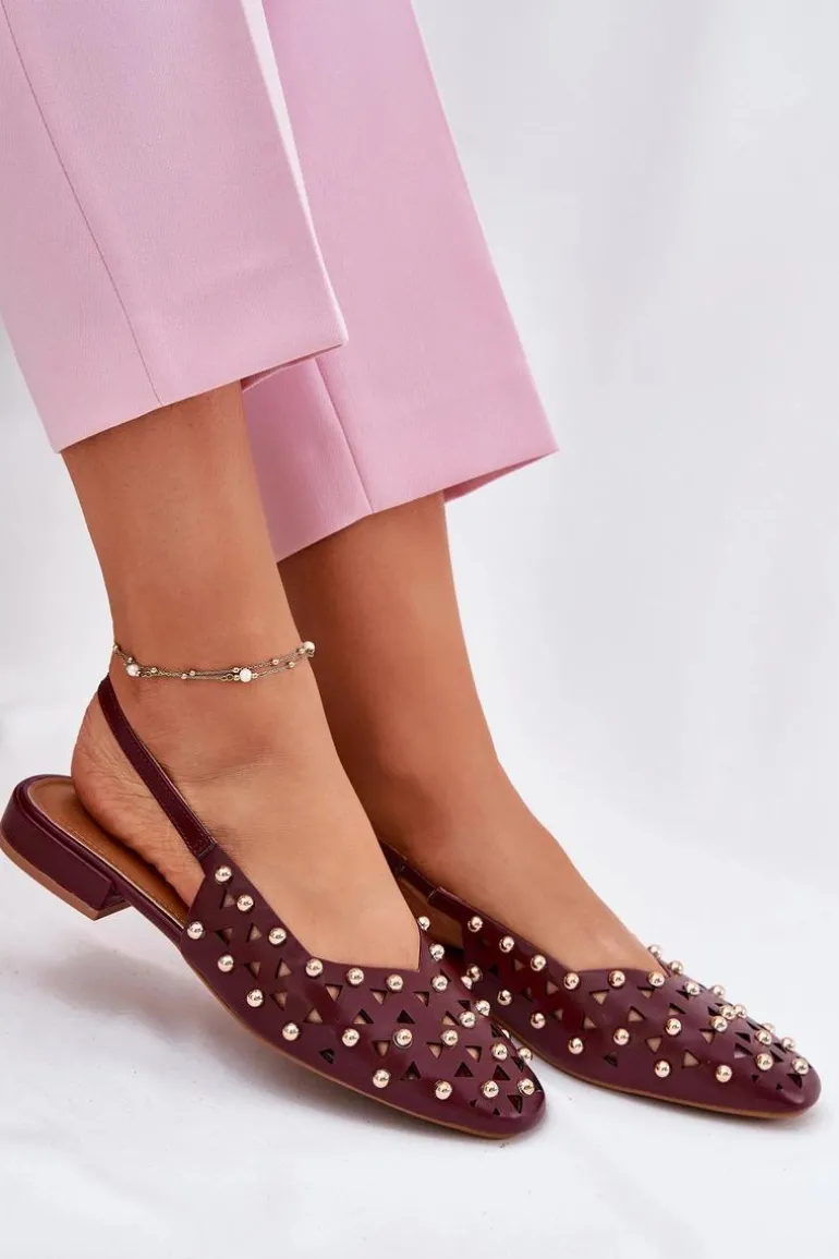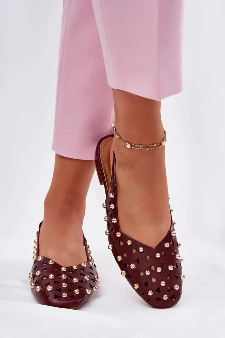 Zdobione Baleriny Na Płaskim Obcasie Bordowe Nilarisela