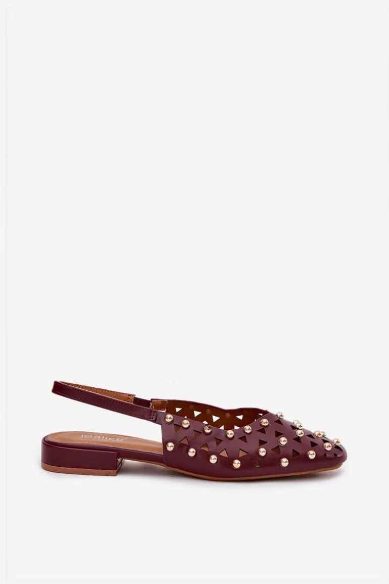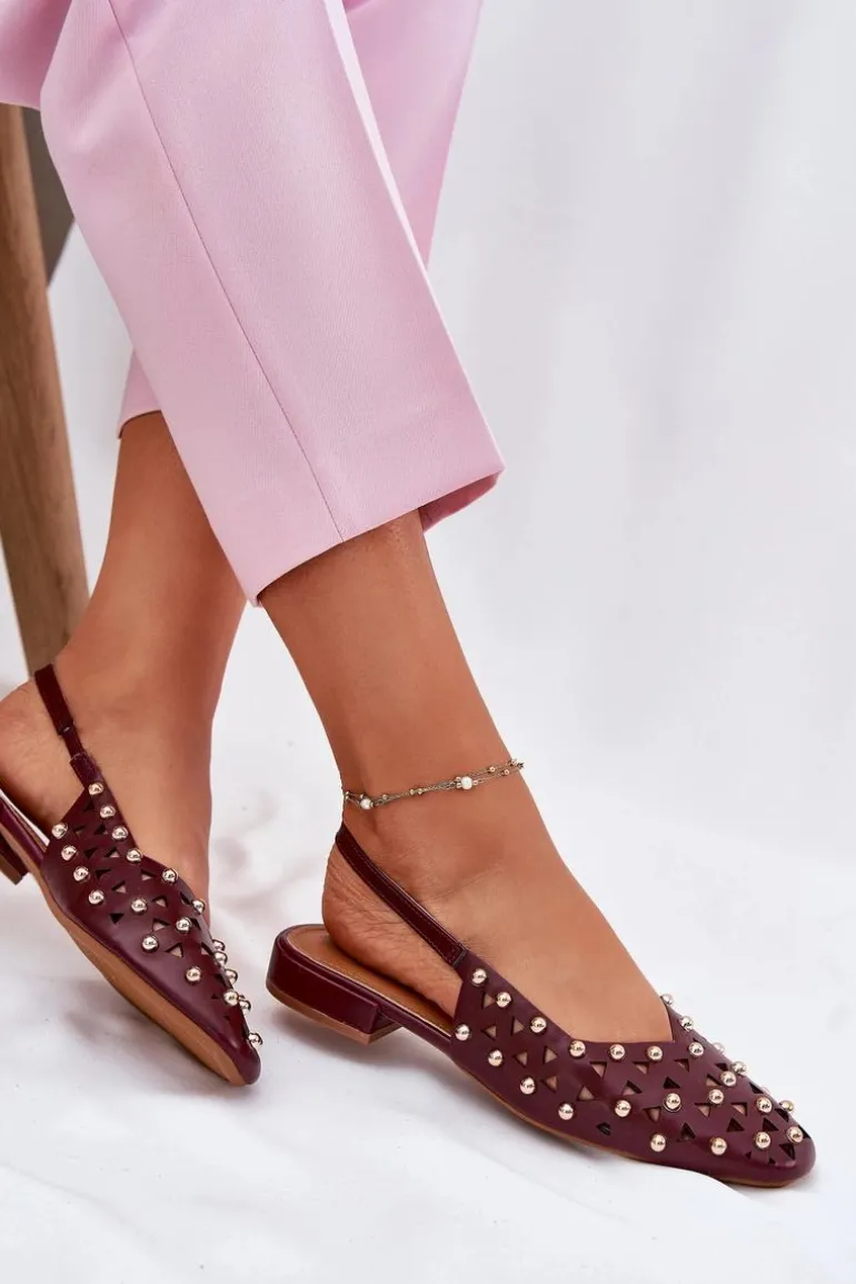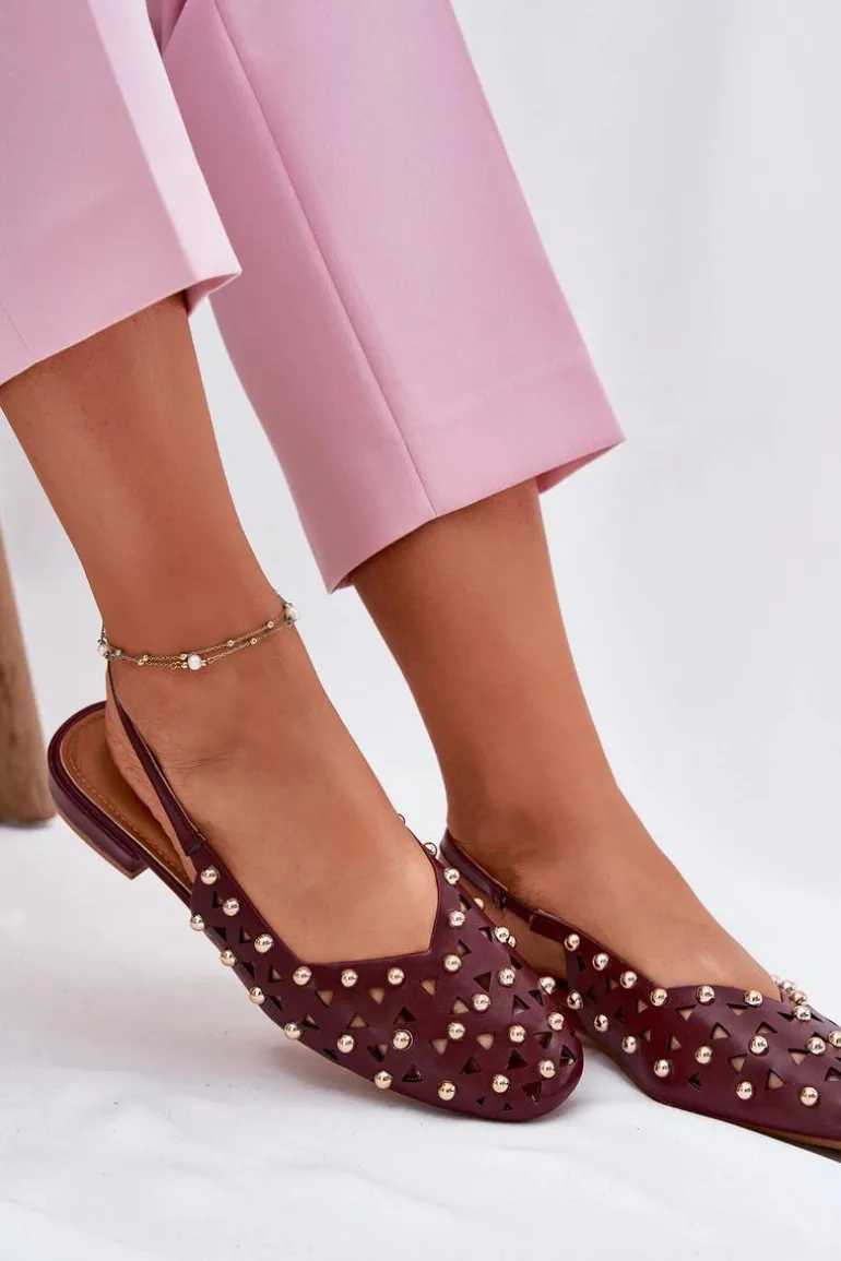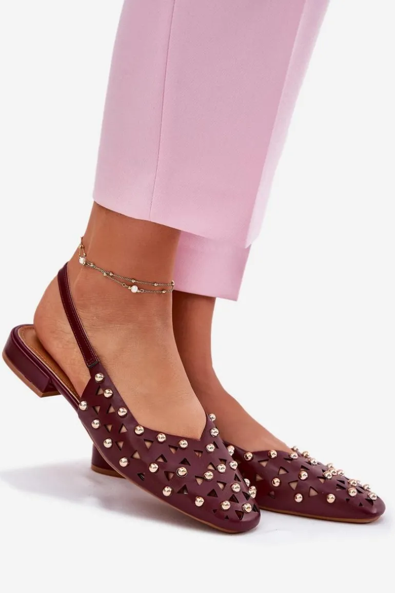 Zdobione Baleriny Na Płaskim Obcasie Bordowe Nilarisela