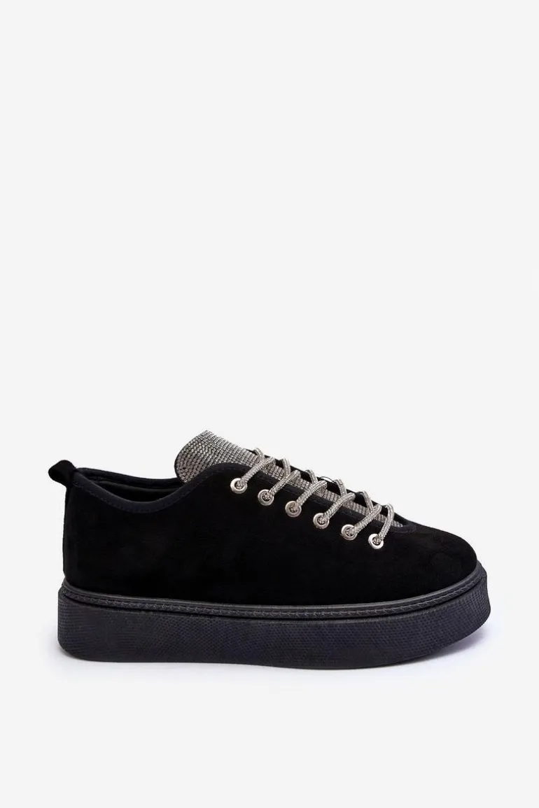 Stylowe buty sportowe damskie wykonane z eko zamszu. Ozdobione małymi, błyszczącymi dżetami. Noski zaokrąglone. Miękka wkładka zapewni komfort podczas użytkowania. Ten model powinien znaleźć się w Twojej szafie! Przy wyborze rozmiaru prosimy kierować się tabelą rozmiarów.