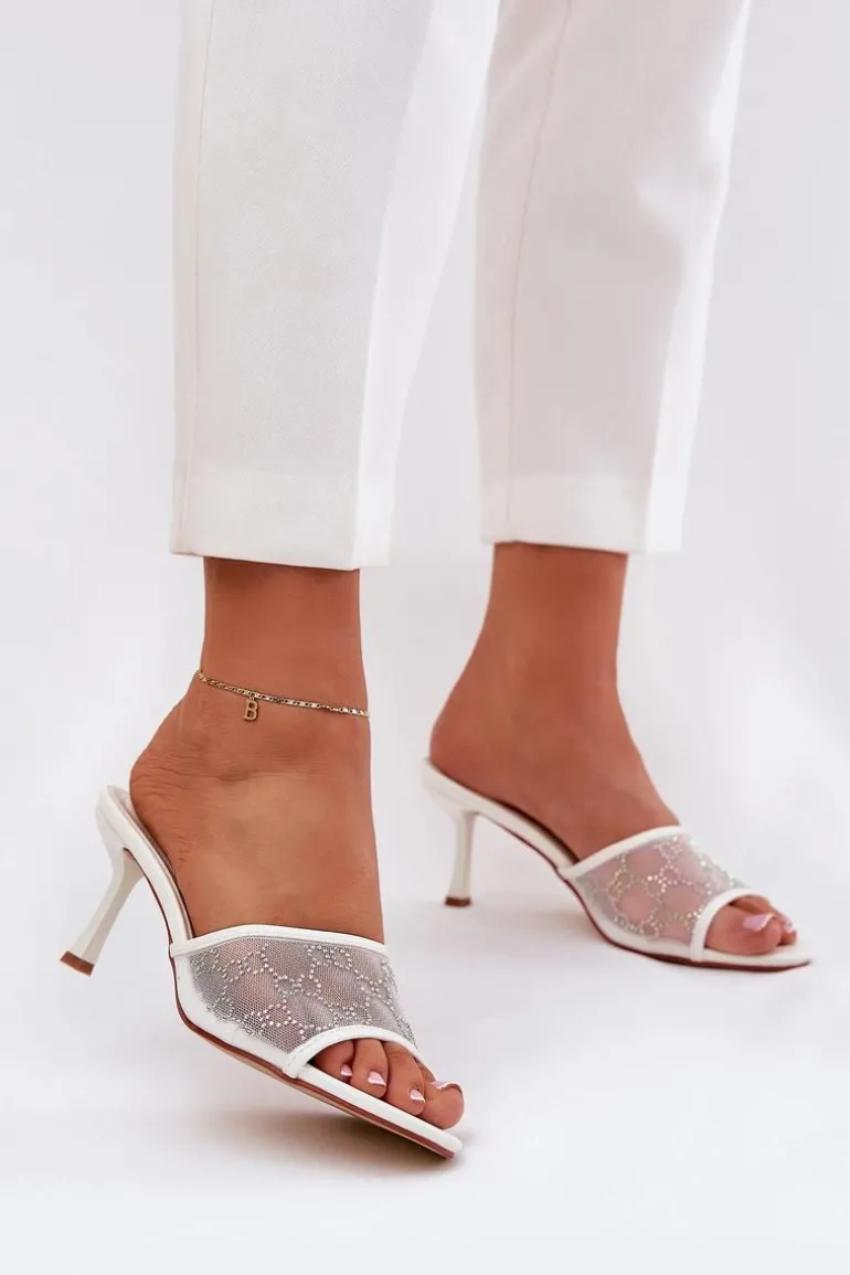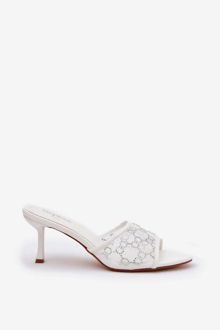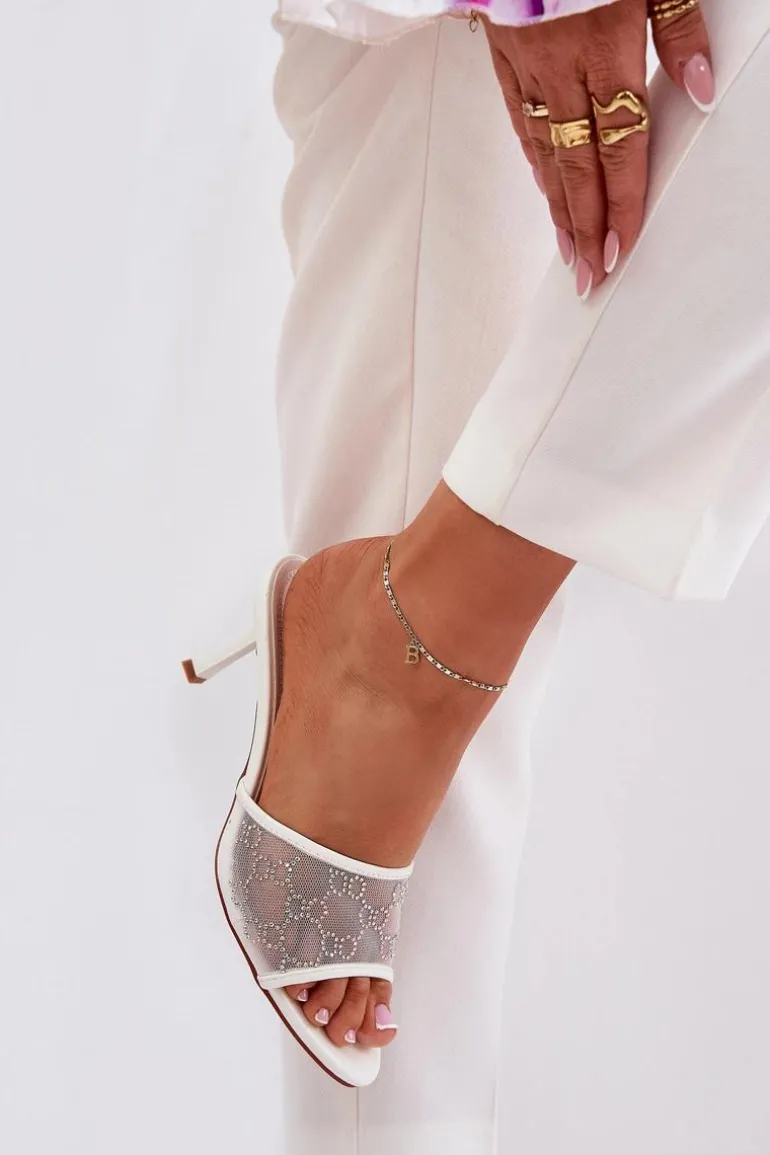 Klapki damskie na obcasie szpilce. Na przodzie, na pasku, znajduje się subtelne zdobienie, które nadaje im wyjątkowego uroku. Miękka wkładka wykonana z eko skóry gwarantuje wygodę przez cały dzień, czyniąc te klapki idealnym wyborem na letnie wyjścia, jak również na bardziej eleganckie okazje. Przy wyborze rozmiaru prosimy sugerować się tabelą rozmiarów.
