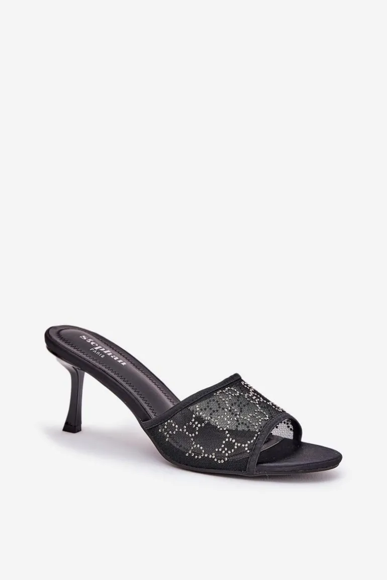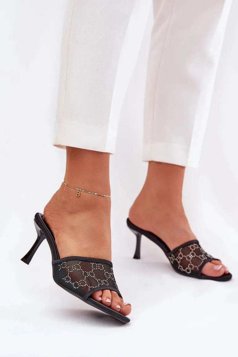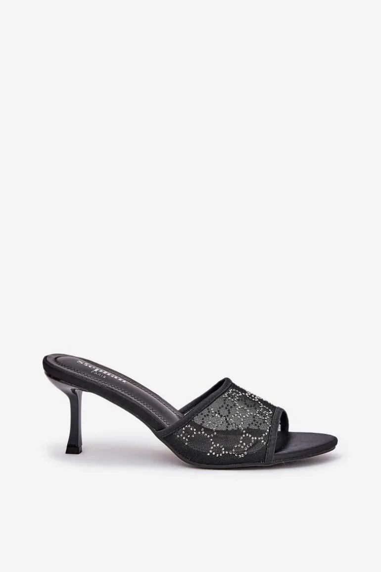 Zdobione Klapki Na Szpilce Czarne Ennoriel