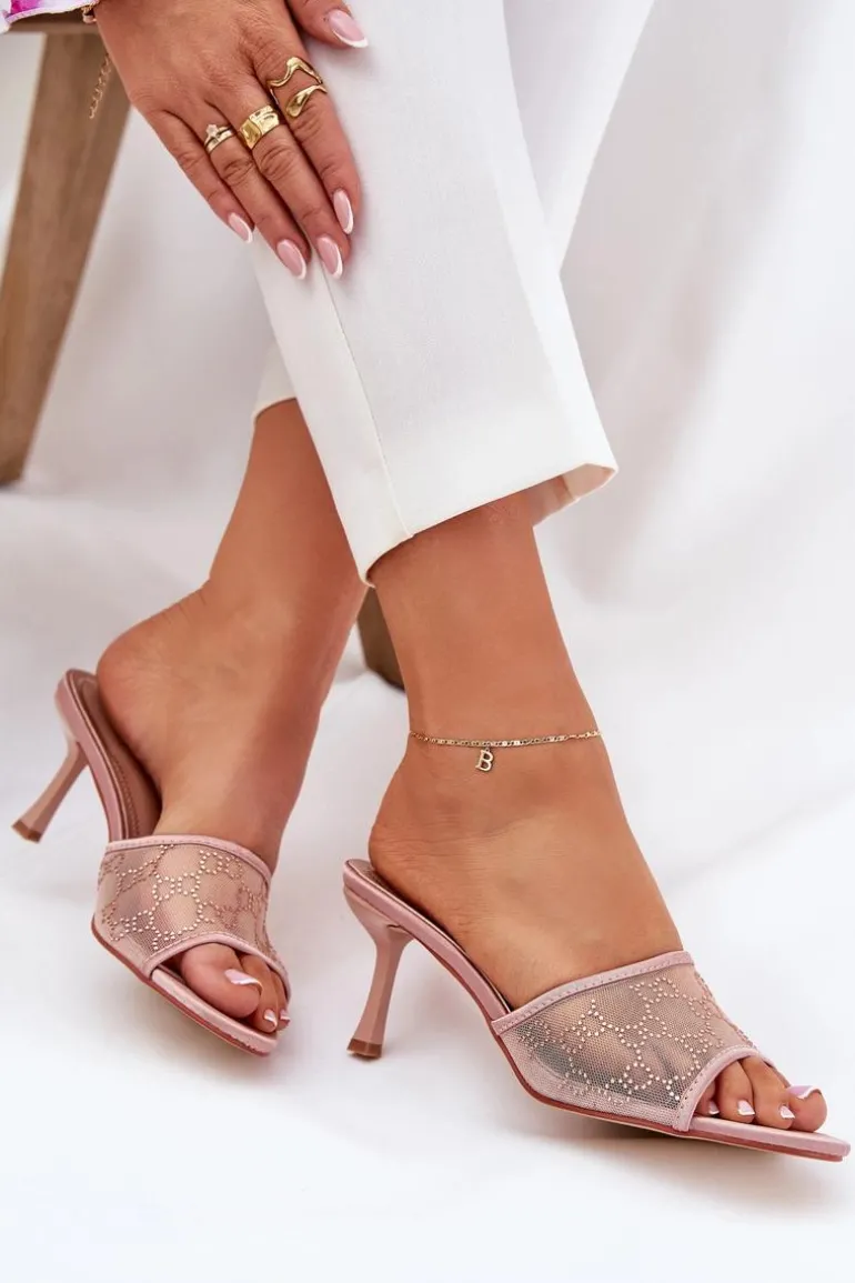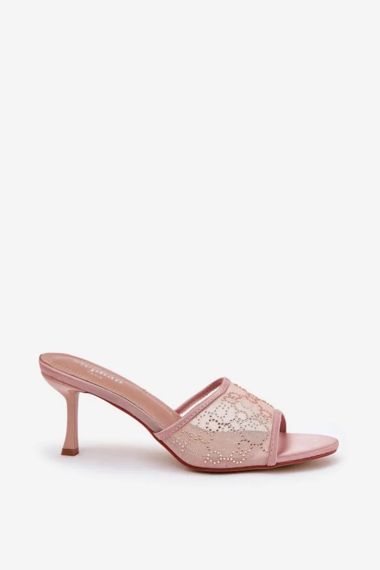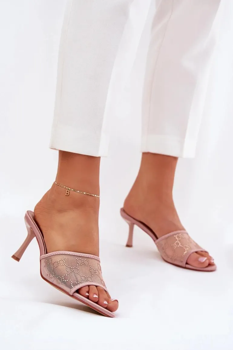 Klapki damskie na obcasie szpilce. Na przodzie, na pasku, znajduje się subtelne zdobienie, które nadaje im wyjątkowego uroku. Miękka wkładka wykonana z eko skóry gwarantuje wygodę przez cały dzień, czyniąc te klapki idealnym wyborem na letnie wyjścia, jak również na bardziej eleganckie okazje. Przy wyborze rozmiaru prosimy sugerować się tabelą rozmiarów.