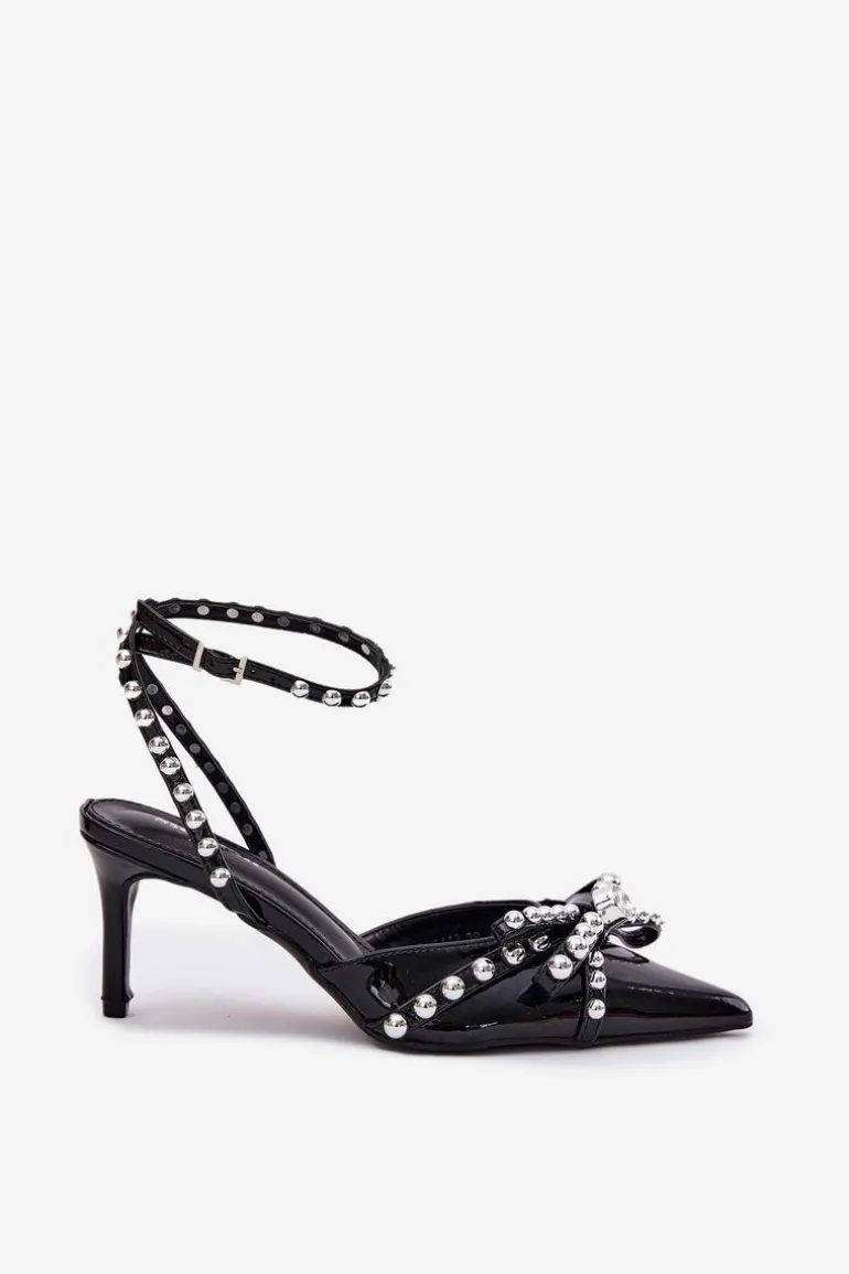 Szpilki damskie lakierowane z odkrytą piętą to elegancka i stylowa propozycja na wyjątkowe okazje. Szpiczaste noski nadają im smukłości, a subtelna kokardka na przodzie dodaje im uroku i kobiecości. Lakierowane wykończenie wprowadza do obuwia odrobinę blasku. Idealne na wieczorne wyjścia, wesela czy inne formalne uroczystości. Przy wyborze rozmiaru prosimy sugerować się tabelą rozmiarów.