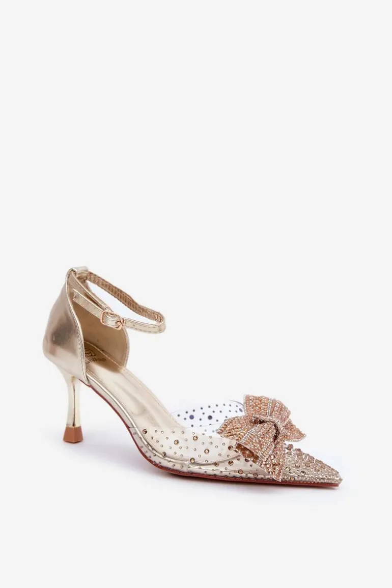 Stylowe szpilki damskie ozdobione efektowną kokardą z przodu, która nadaje im wyjątkowego uroku. Model z noskami w szpic, które optycznie wysmuklają nogi. Zapinane na regulowany pasek ze sprzączką, co zapewnia idealne dopasowanie i wygodę noszenia. Eleganckie i kobiece, doskonałe na wieczorowe wyjścia i specjalne okazje. Przy wyborze rozmiaru prosimy sugerować się tabelą rozmiarów.