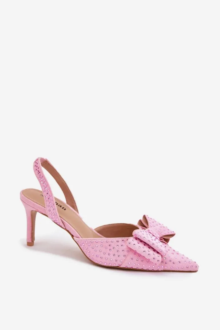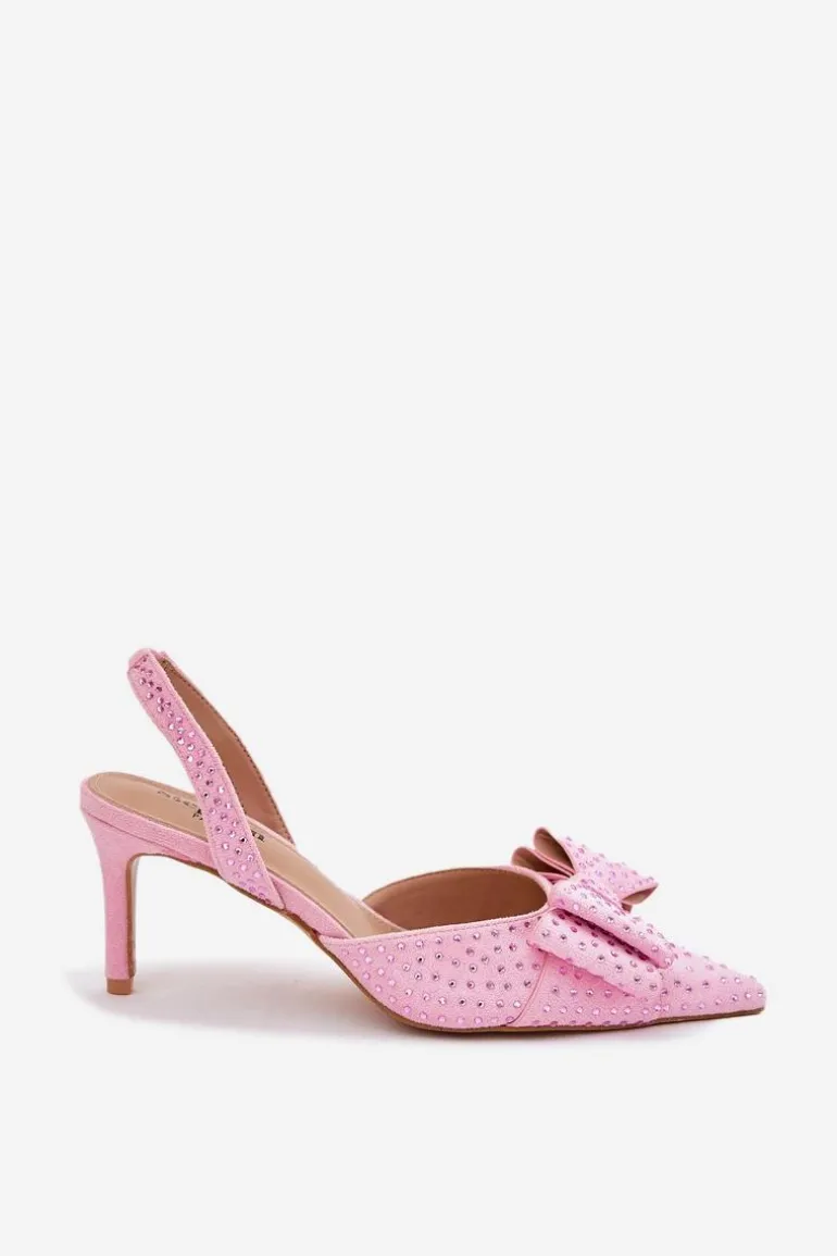 Zdobione szpilki damskie z odkrytą piętą to elegancka i stylowa propozycja na wyjątkowe okazje. Szpiczaste noski podkreślają smukłość sylwetki, a kokardka z przodu dodaje uroku i subtelności. Miękka wkładka zapewnia komfort przez cały dzień, łącząc wygodę z modnym wyglądem. Idealne na wieczorne wyjścia, wesela czy inne formalne uroczystości. Przy wyborze rozmiaru prosimy sugerować się tabelą rozmiarów.