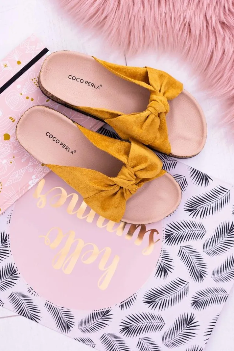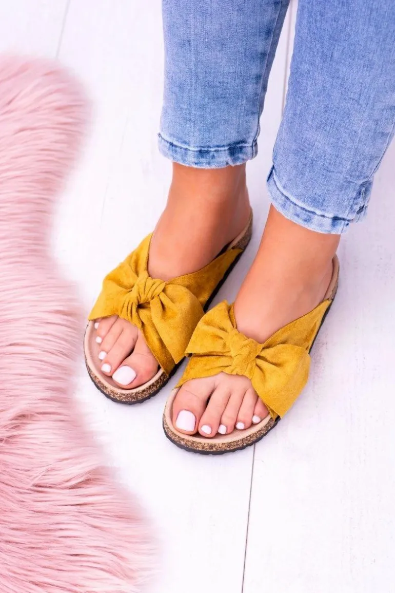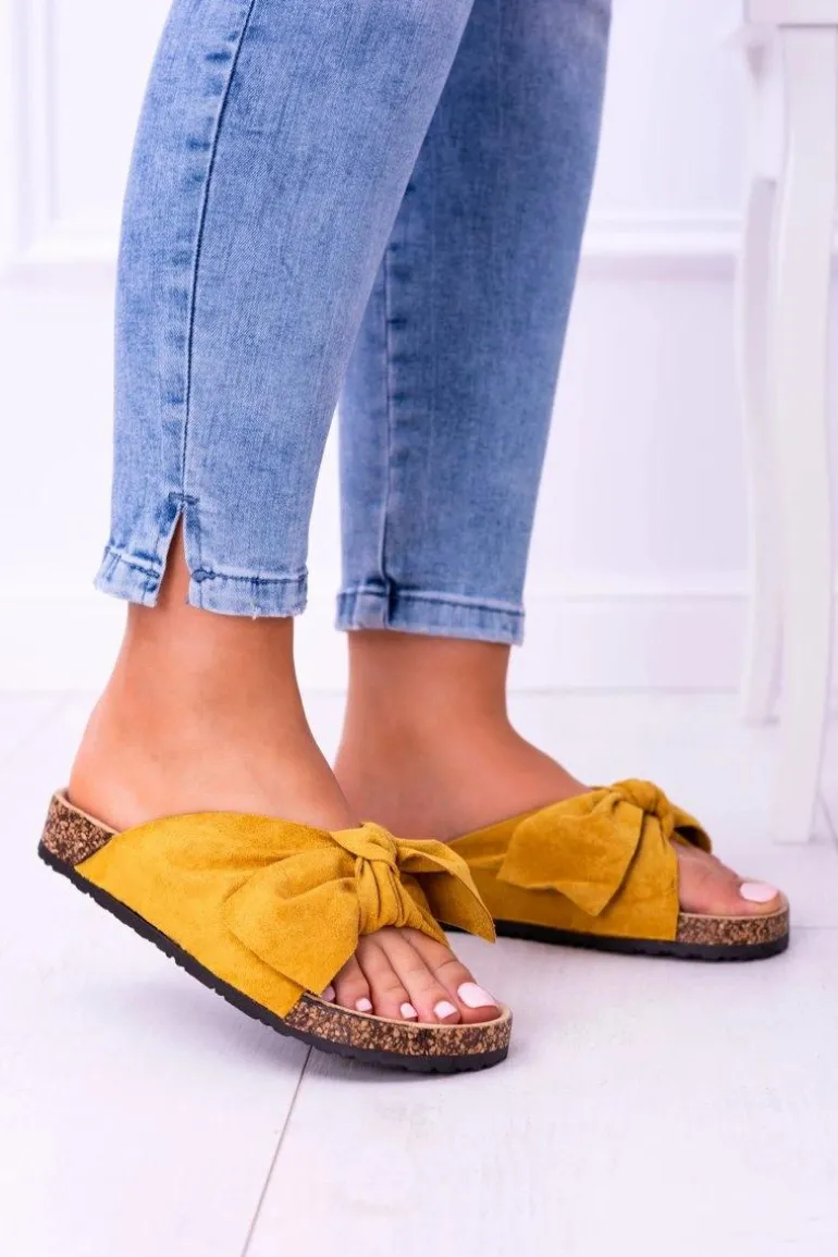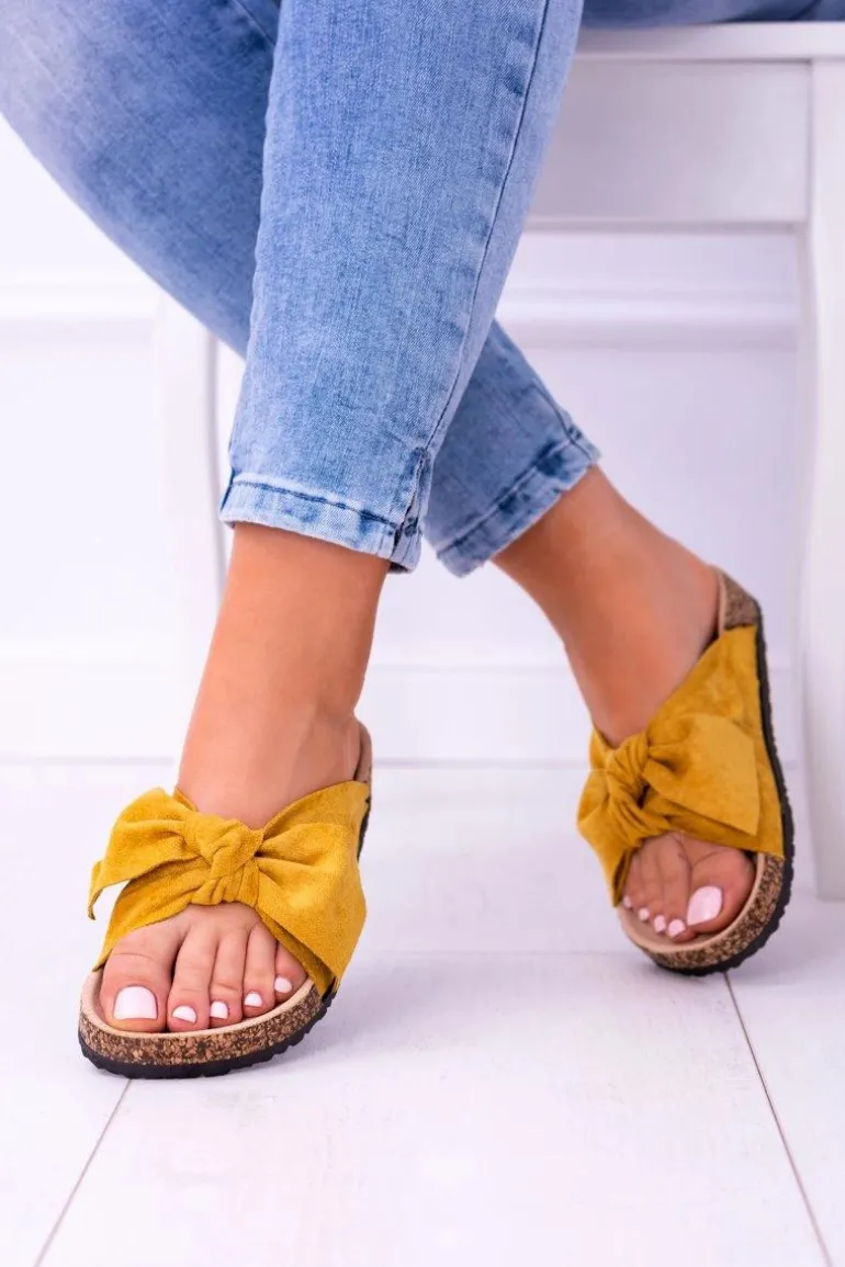 Żółte Damskie Klapki Z Kokardami Na Korku Sunshine