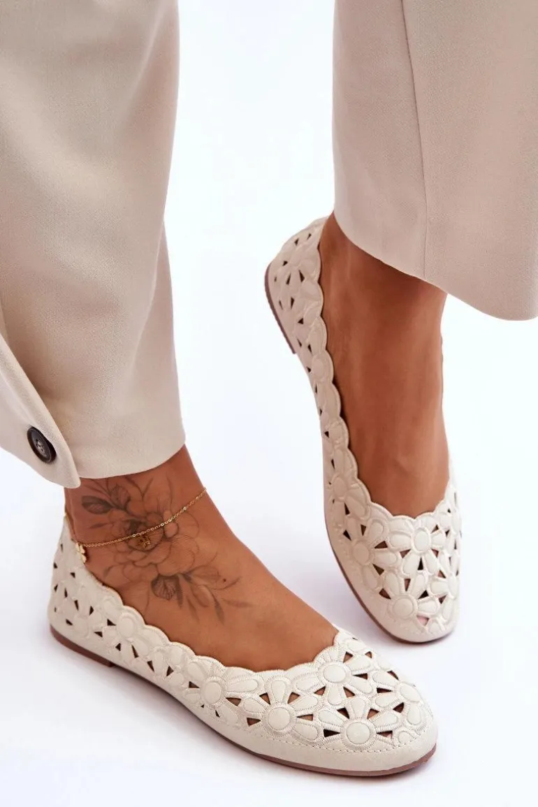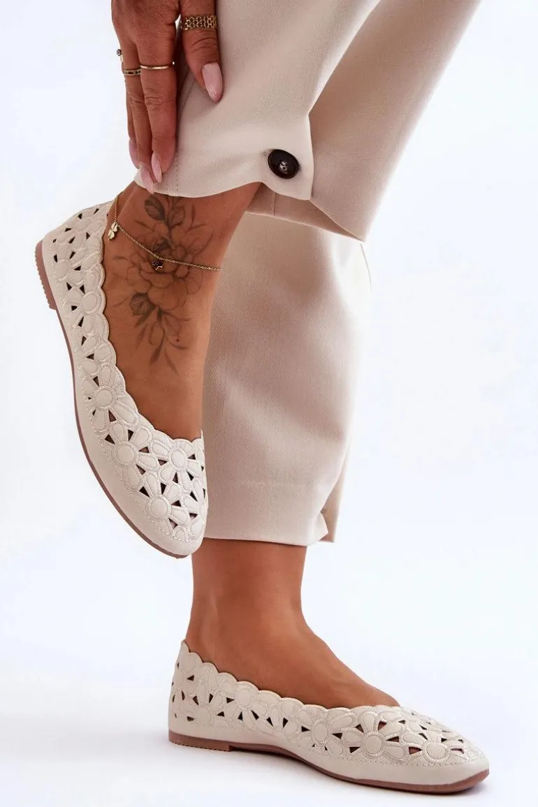 Ażurowe Błyszczące Baleriny Damskie Beżowe Visionary