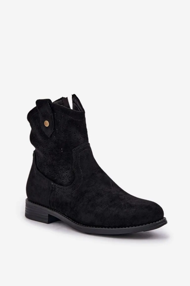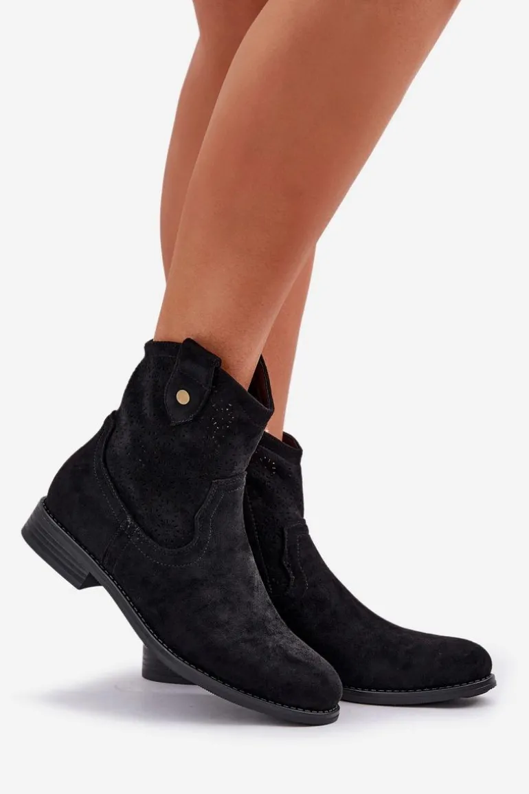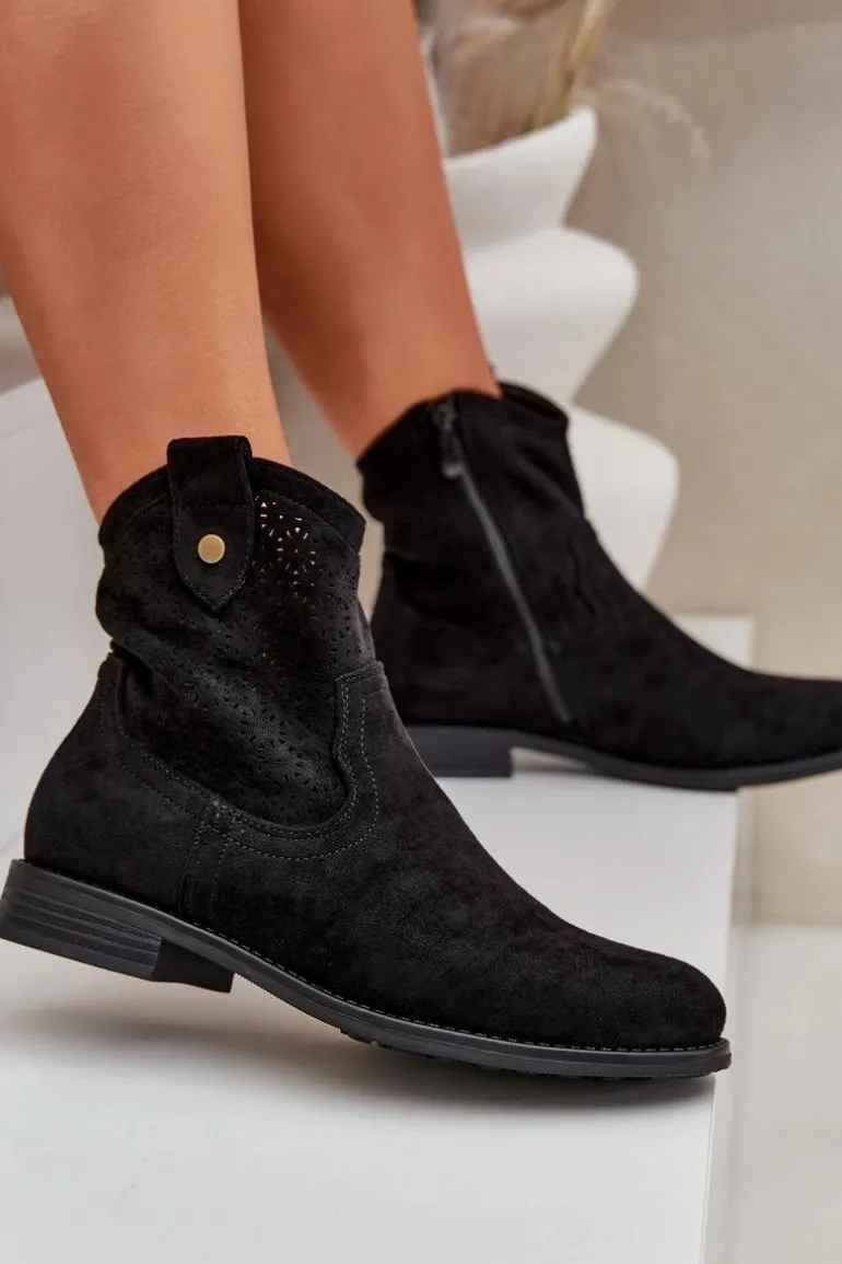 Botki od marki S.Barski, wykonane z eko zamszu, to elegancka propozycja na co dzień. Osadzone na płaskim obcasie, zapewniają wygodę przez cały dzień. Cholewka zdobiona delikatnym ażurowym wzorem dodaje im subtelnego uroku, a zamek ułatwia zakładanie. Idealne do casualowych stylizacji, łączące styl z komfortem. Przy wyborze rozmiaru prosimy sugerować się tabelą rozmiarów.