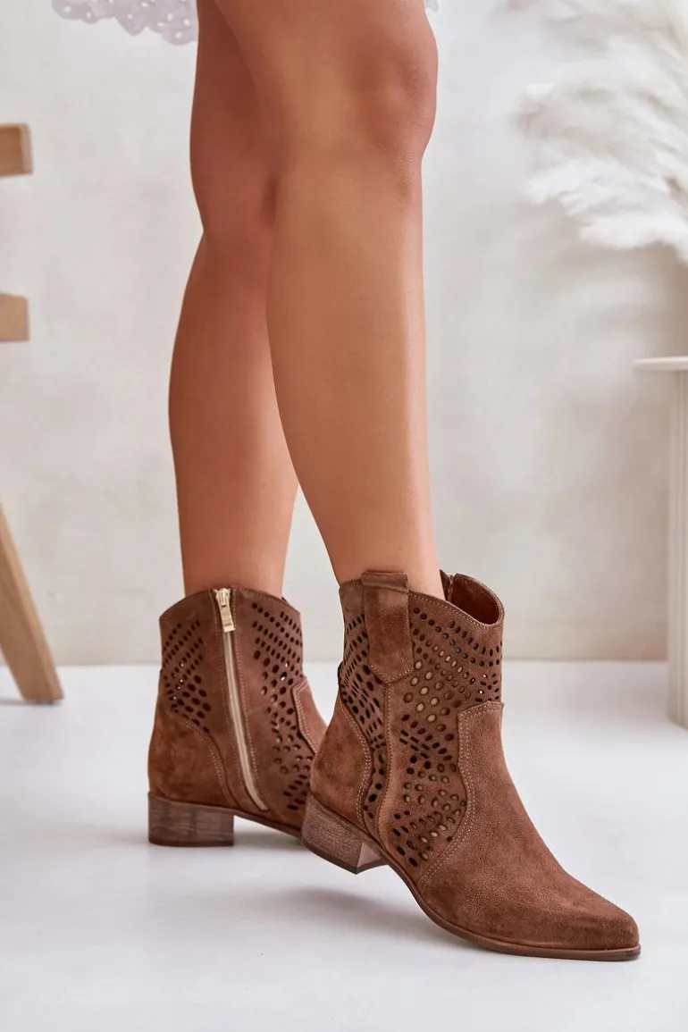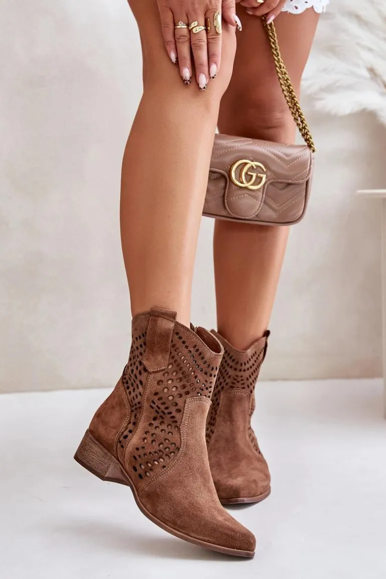 Botki damskie to idealny wybór na jesienne dni. Wykonane z wysokiej jakości naturalnego zamszu, są eleganckie i stylowe. Osadzone na niskim obcasie, zapewniają wygodę i stabilność. Ażurowy wzorek na cholewce dodaje subtelnego uroku, a zamek ułatwia szybkie zakładanie. Szpiczaste noski optycznie wysmuklą nogi. Ten niezwykle modny fason powinnaś mieć w swojej szafie! Przy wyborze rozmiaru prosimy sugerować się tabelą rozmiarów.