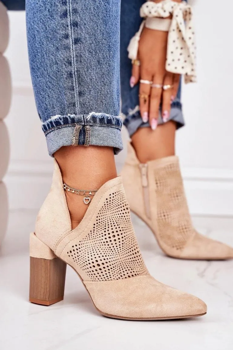 Wiosenne ażurowe botki na słupku. Buty wykonane są z eko zamszu. Botki są bardzo wygodne dzięki miękkiej wkładce oraz stabilnemu słupkowi. Koniecznie sprawdź całą naszą kolekcję damskich botków! Przy wyborze rozmiaru prosimy sugerować się tabelą rozmiarów.
