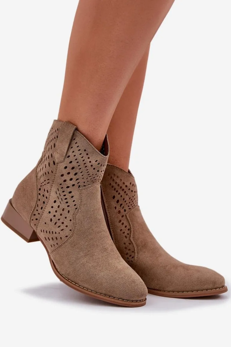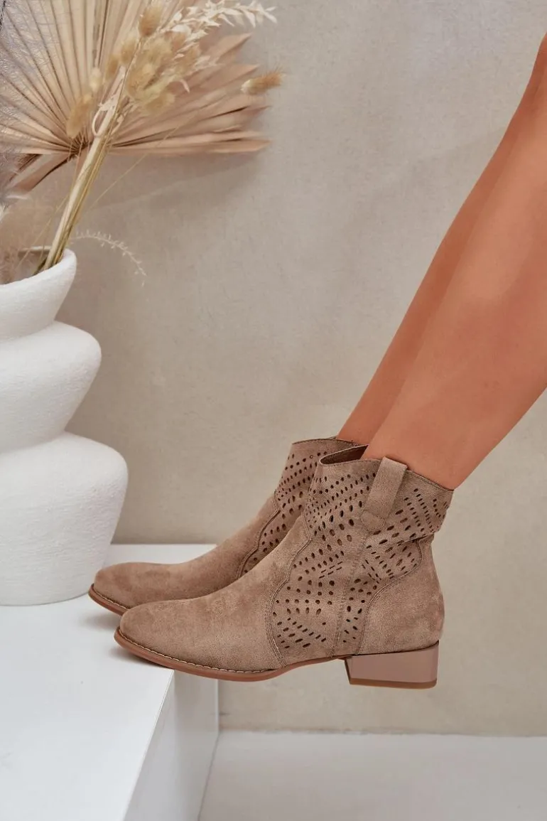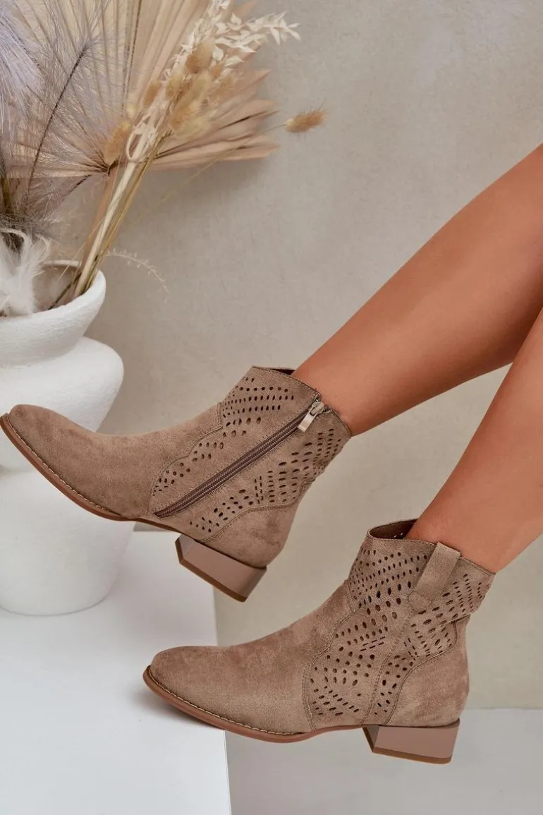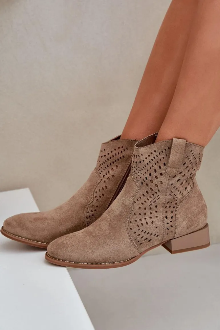 Ażurowe Damskie Botki Na Niskim Obcasie Beżowe Neliawen