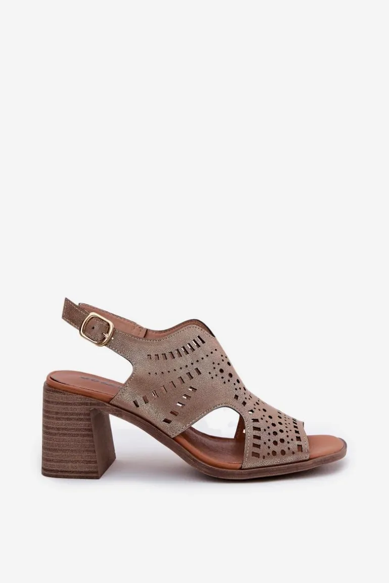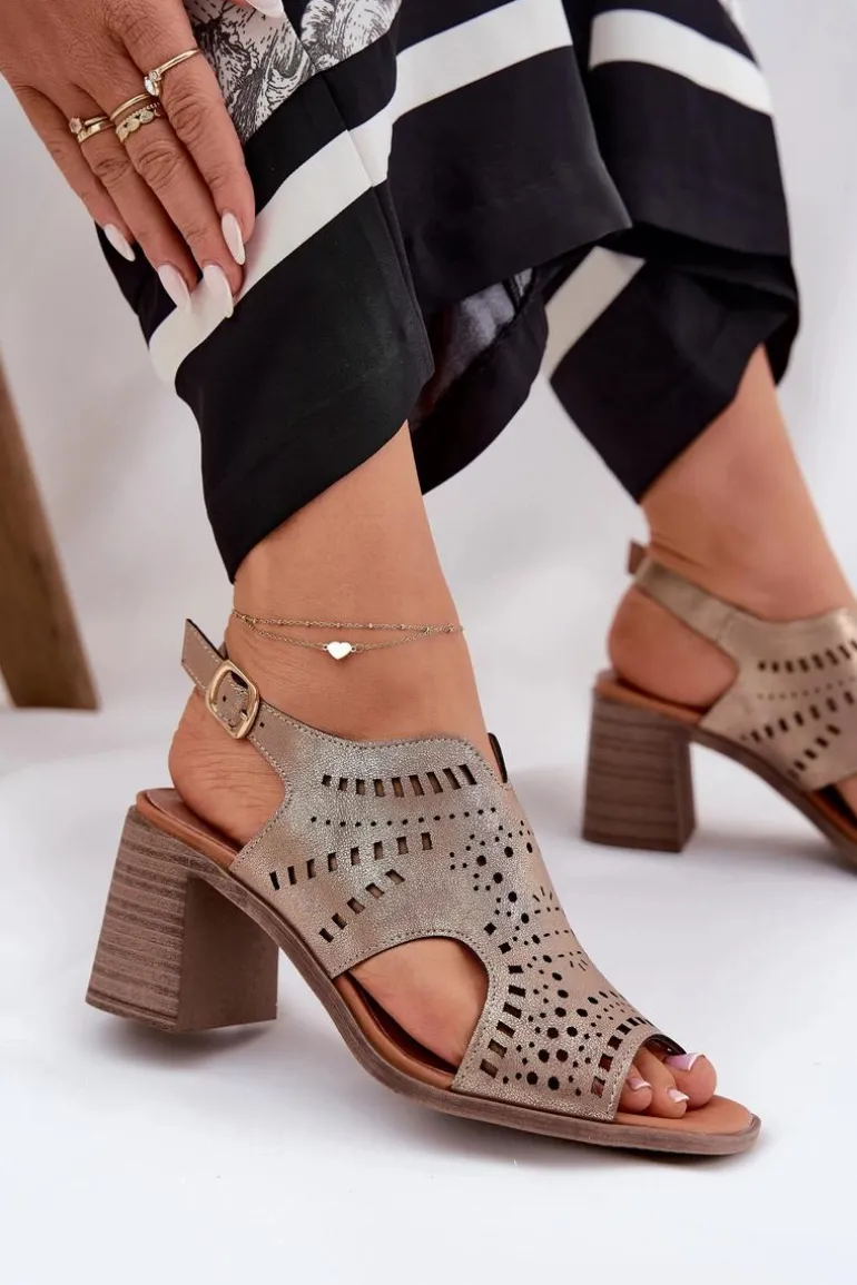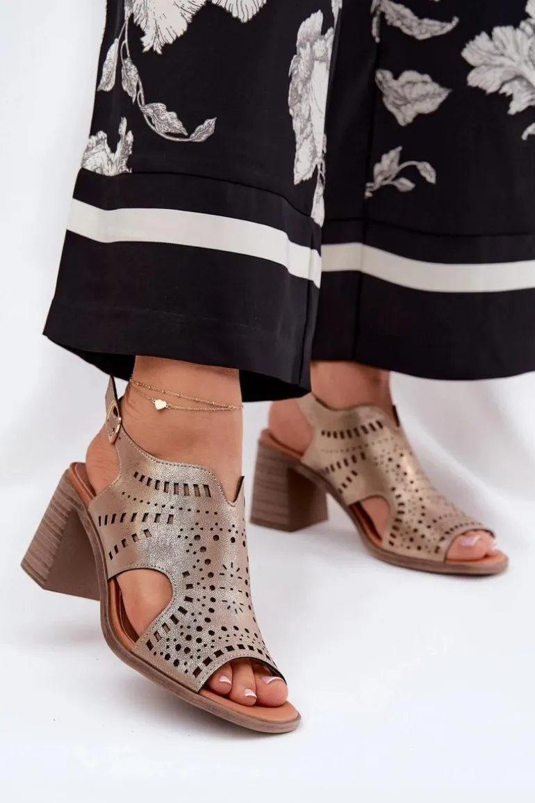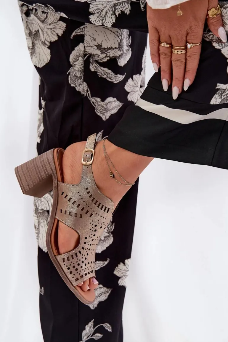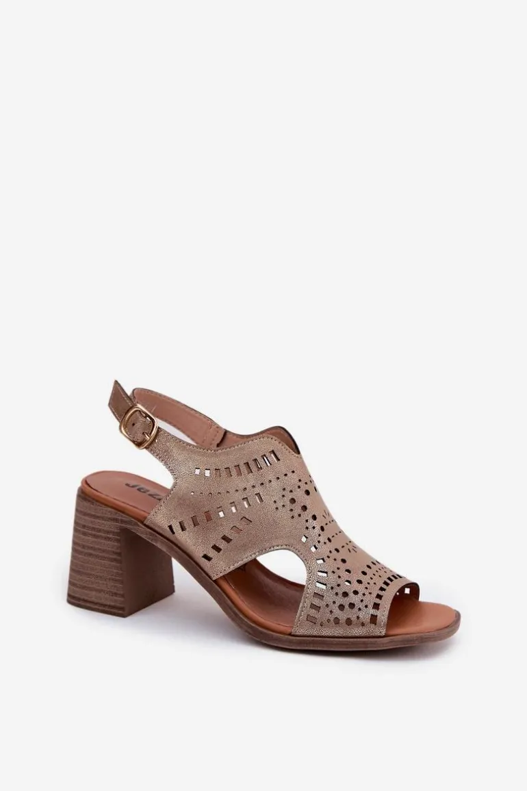 Sandały damskie marki Jezzi. Wykonane z wysokiej jakości eko skóry. Model ten wyróżnia ażurowa cholewka. Osadzone na obcasie w formie słupka. Regulowany pasek ze sprzączką umożliwia idealne dopasowanie do stopy. Dodatkowo wkładka ze skóry naturalnej zapewnia dodatkowy komfort i uczucie miękkości. Te stylowe sandały będą doskonałym uzupełnieniem letnich stylizacji. Przy wyborze rozmiaru prosimy sugerować się tabelą rozmiarów.