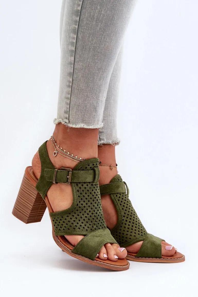Piękne i wygodne sandały na słupku. Buty wykonane są z wysokiej jakości zamszowej eko skóry. O Twój komfort zadba miękka cholewka oraz wkładka ze skóry naturalnej. Modny kolor i drewniany słupek urozmaicą wszystkie Twoje stylizacje. Koniecznie sprawdź całą naszą kolekcję damskich sandałów! Przy wyborze rozmiaru prosimy kierować się tabelą rozmiarów.