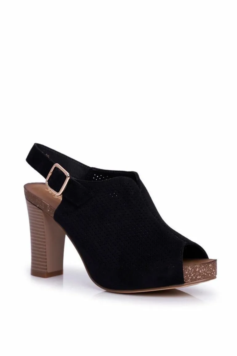 Ażurowe Sandały Na Słupku Sergio Leone SK855 Czarne