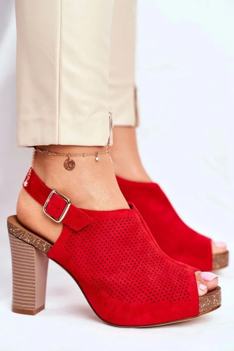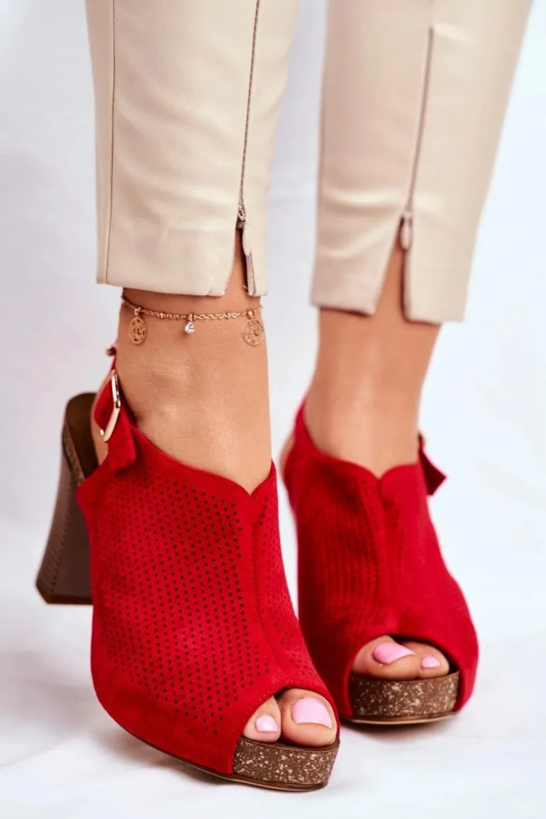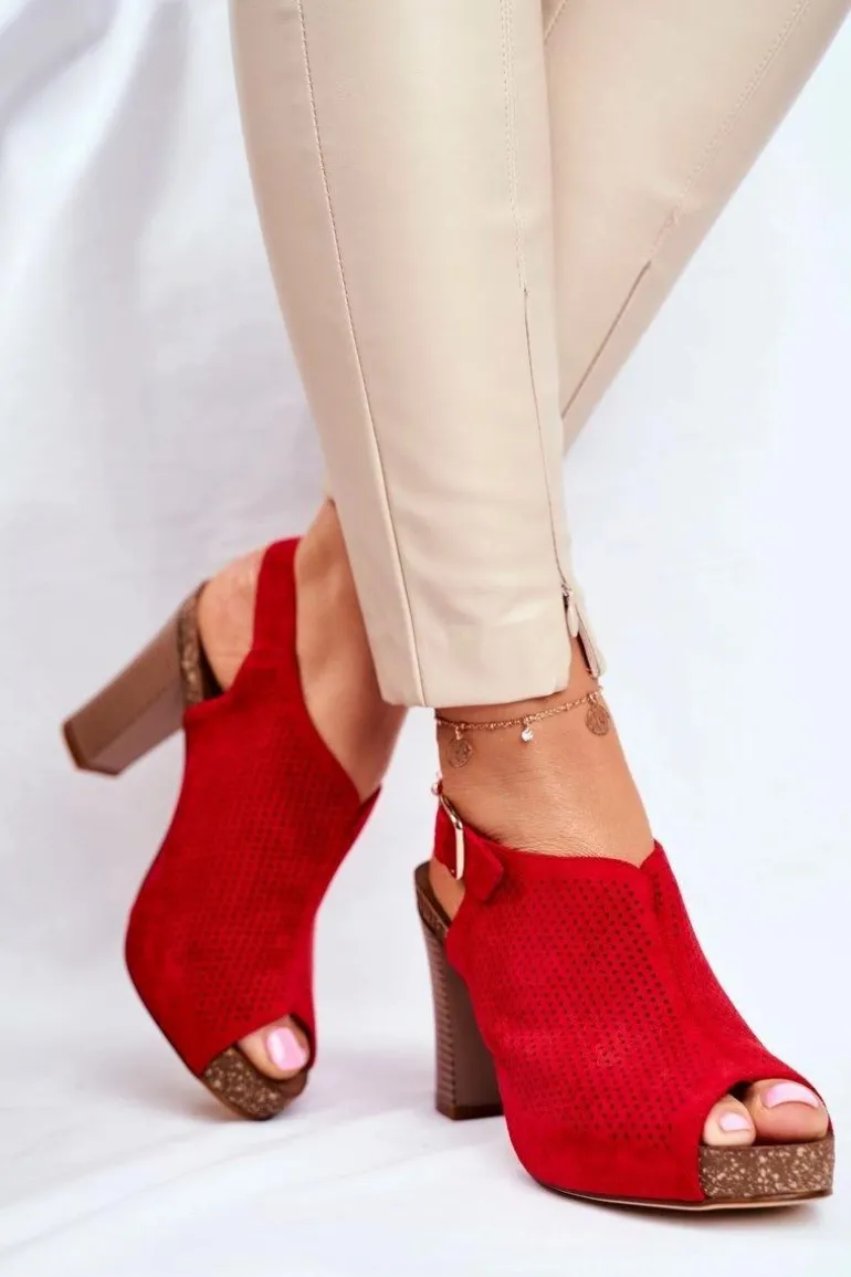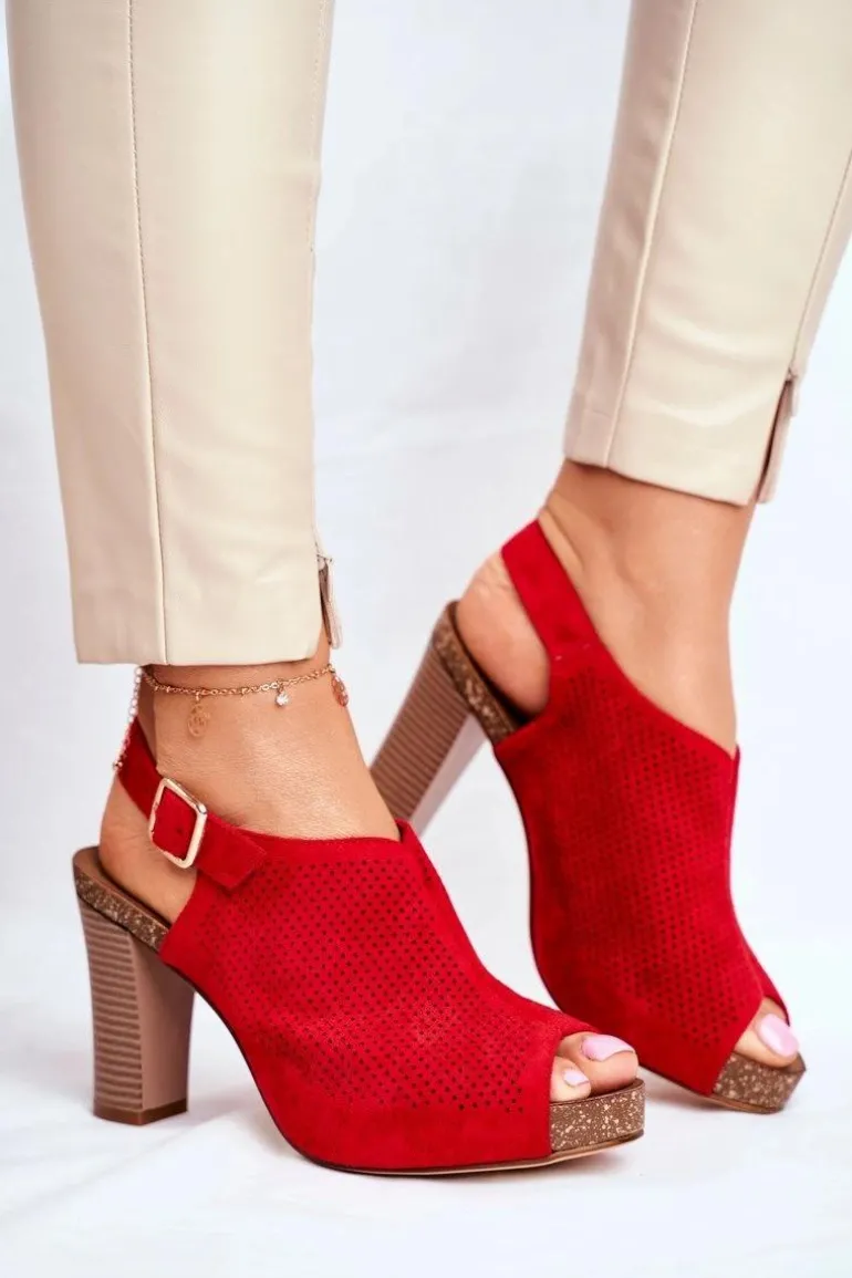 Ażurowe Sandały Na Słupku Sergio Leone SK855 Czerwone