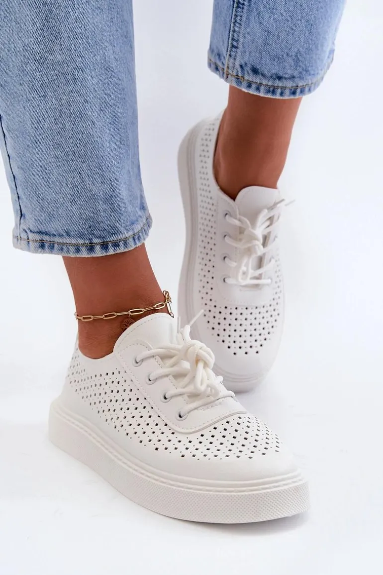 Trampki damskie z ażurową cholewką. Wykonane z eko skóry. Osadzone na platformie. Noski zaokrąglone. Miękka wkładka z pianki, którą dodatkowo można wyciągnąć, zapewni wygodę na każdym kroku. Przy wyborze rozmiaru prosimy sugerować się tabelą rozmiarów.