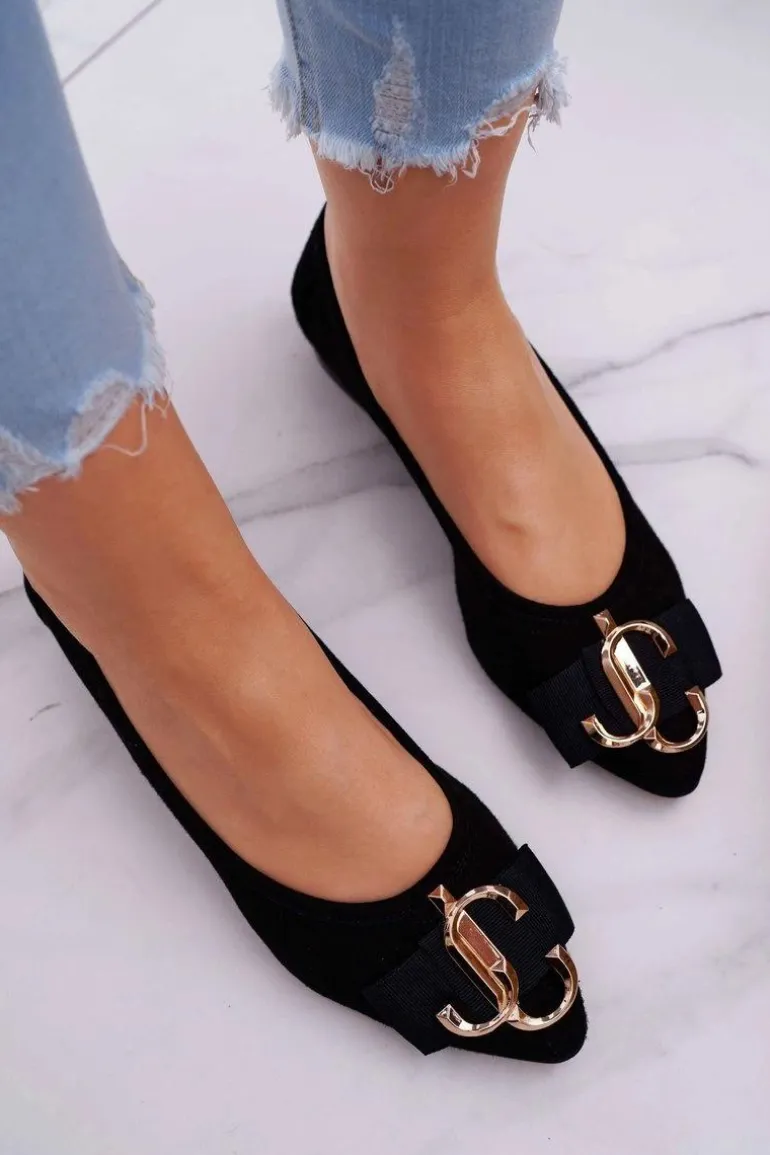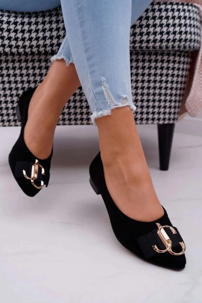 Baleriny Damskie Czarne Zamszowe Portes
