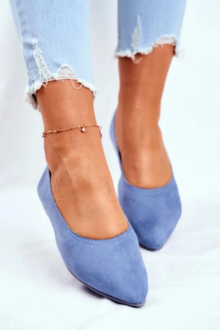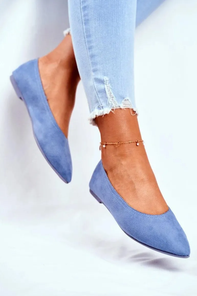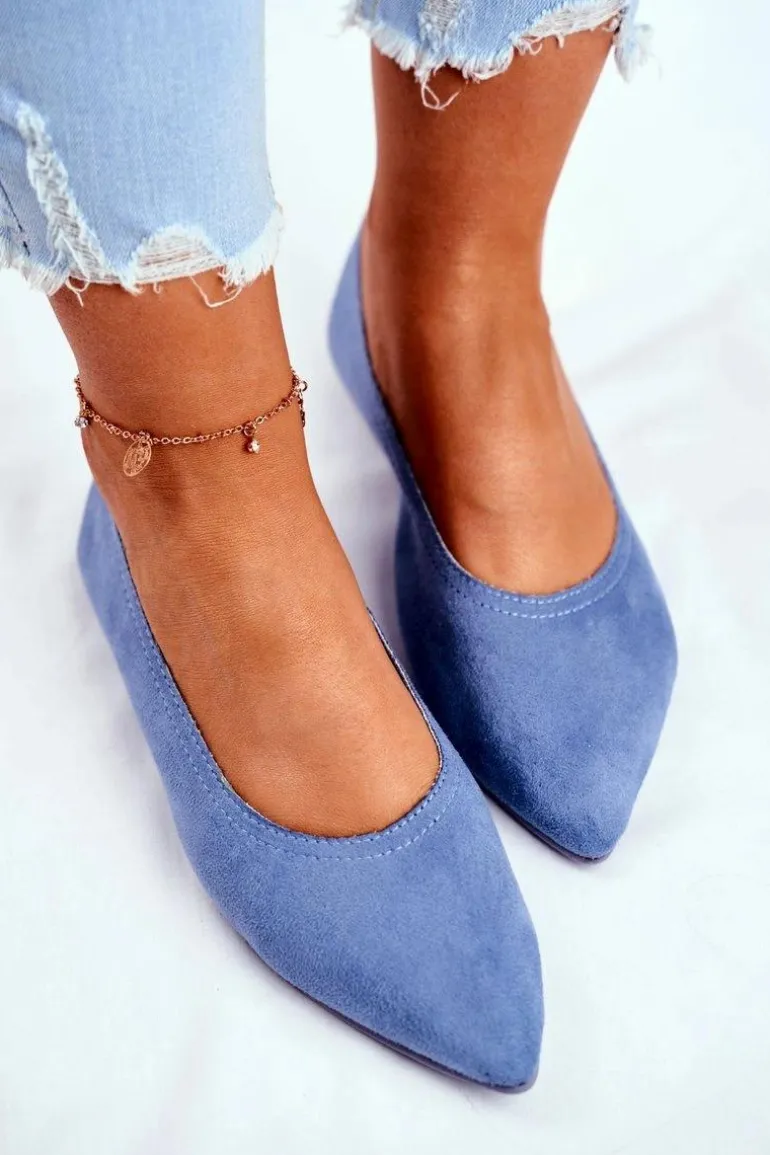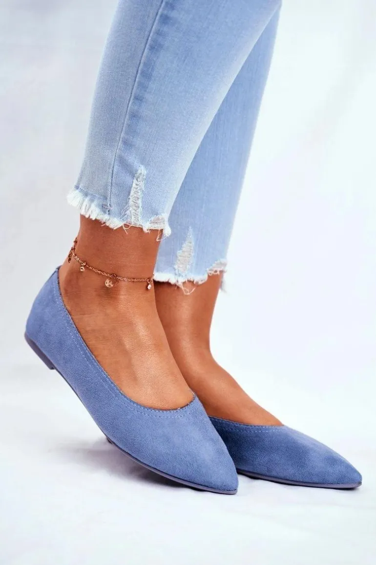 Baleriny Damskie Eko-Zamsz Niebieskie Bellissima