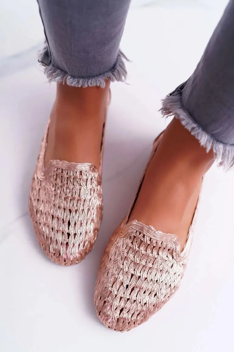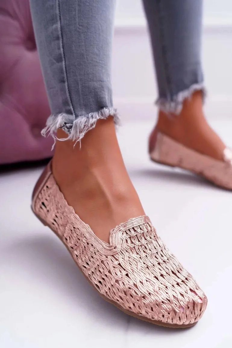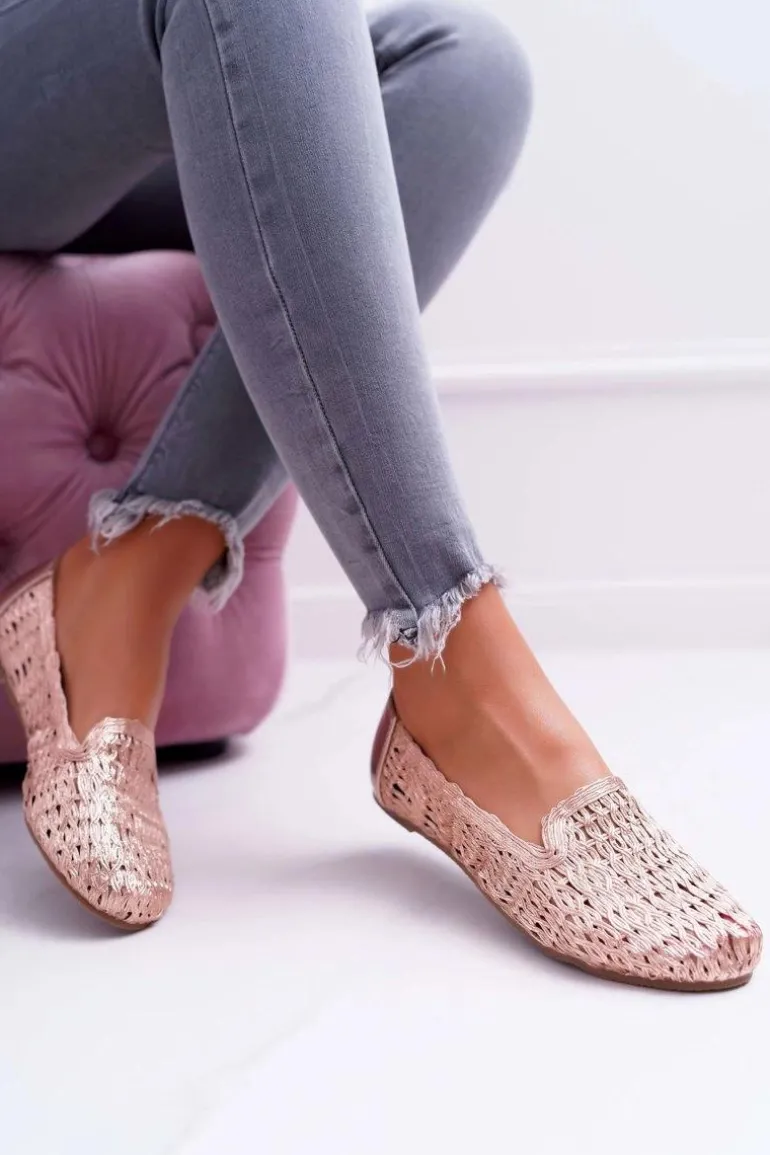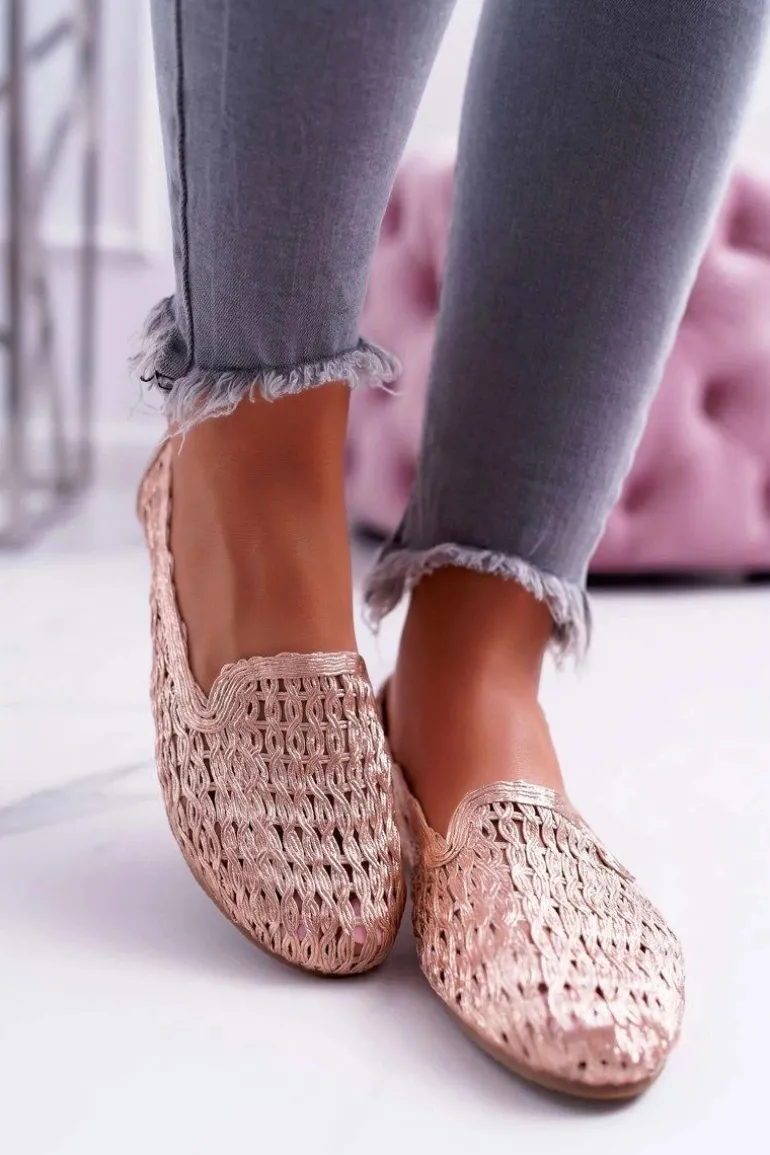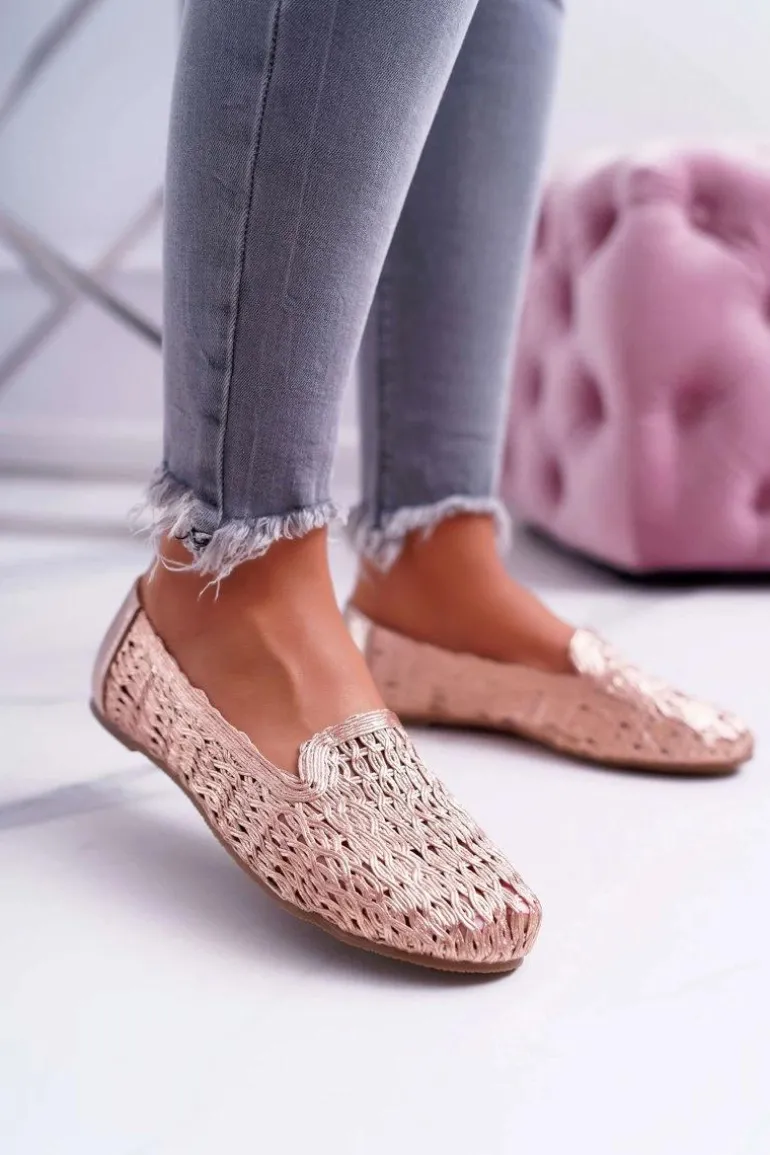 Baleriny Damskie Lu Boo Plecione Różowe Złoto 4Ever