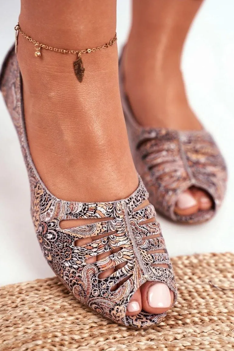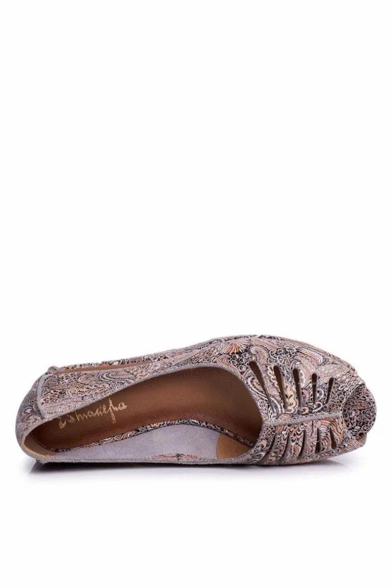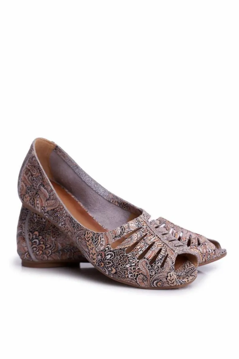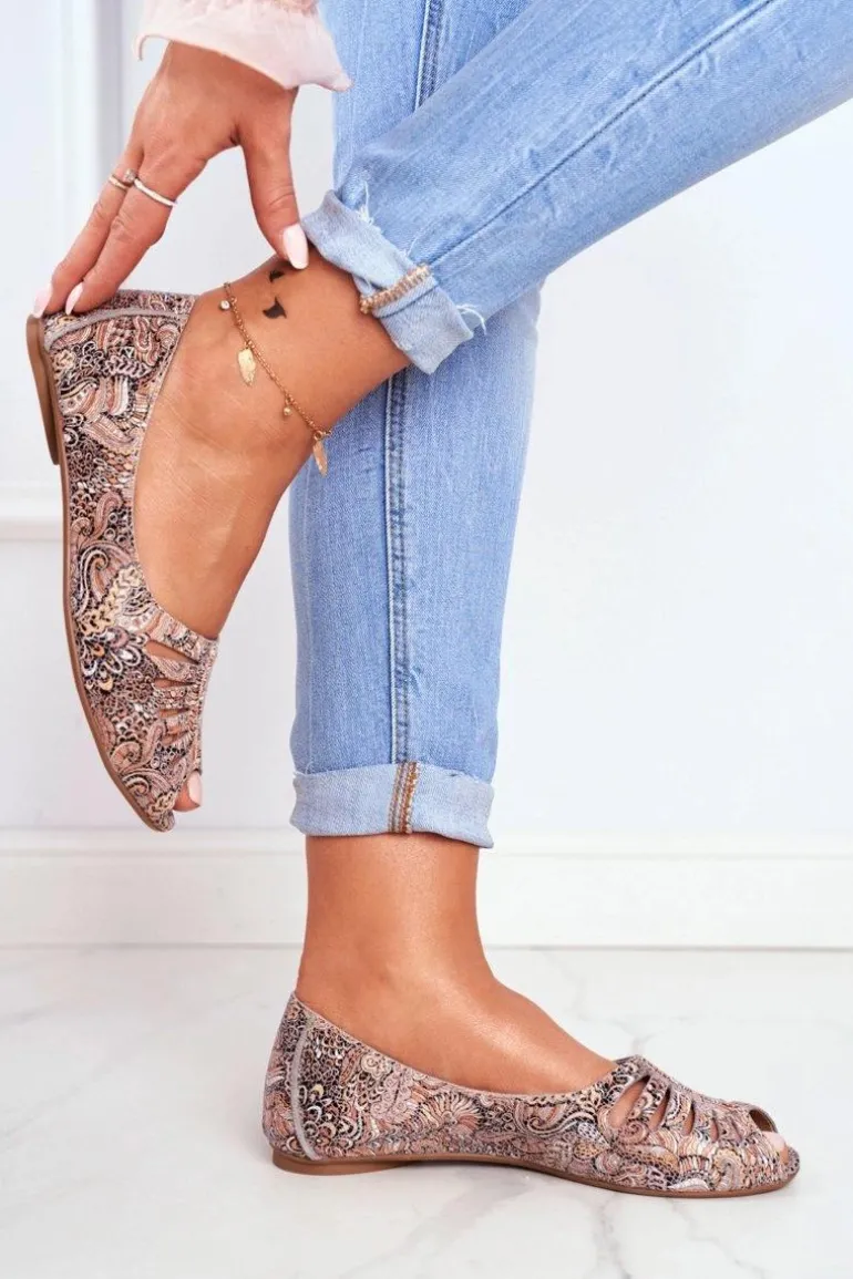 Baleriny Damskie Maciejka Skórzane Brązowe we wzory 03497-21