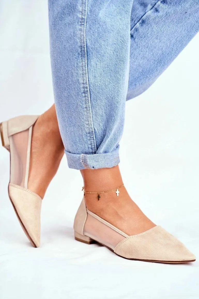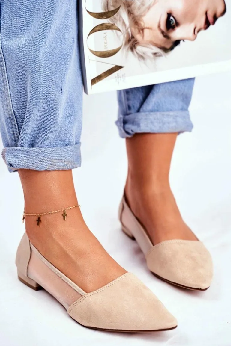 Baleriny Damskie Z Siateczką Zamsz Beżowe Fibe