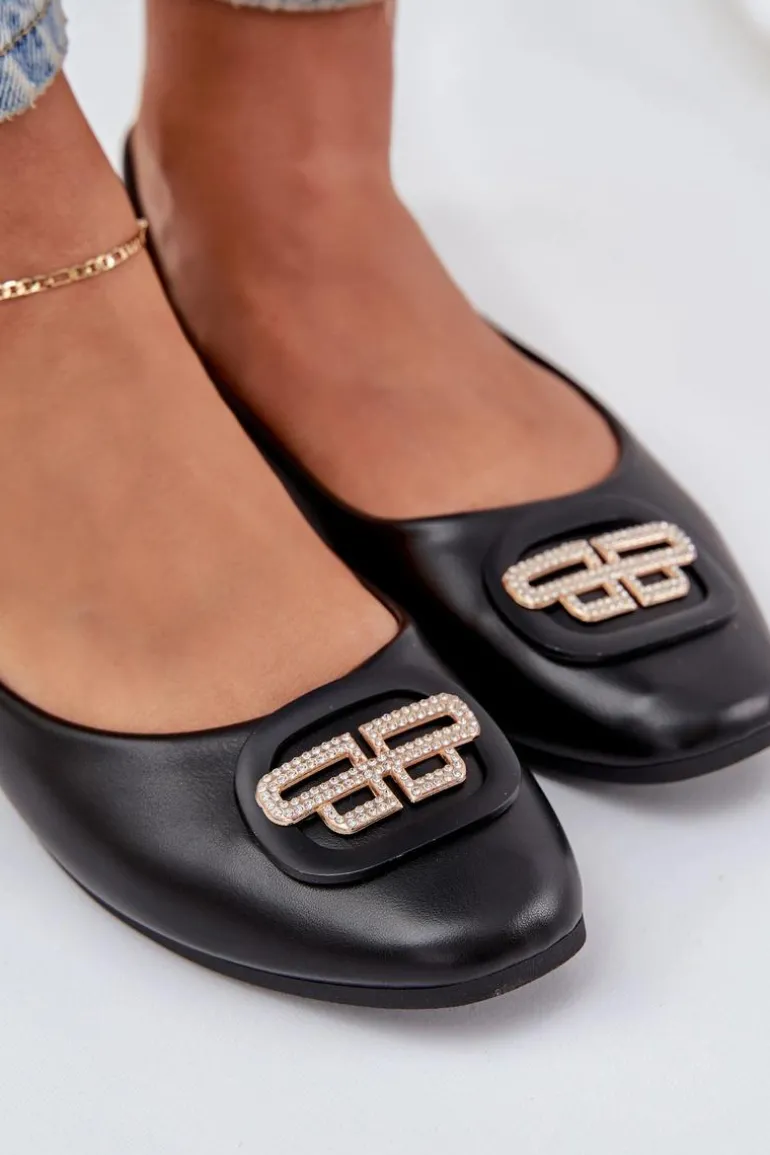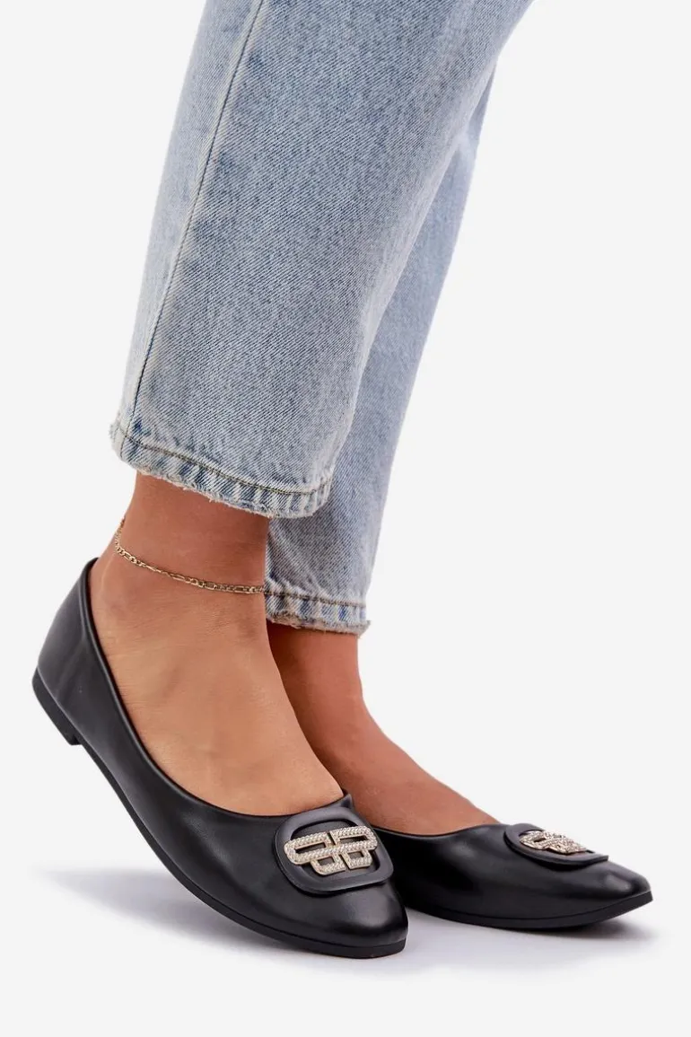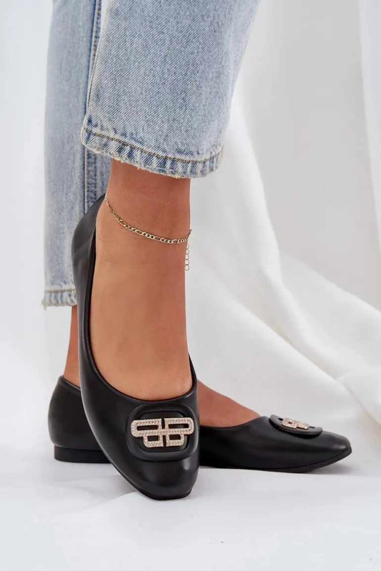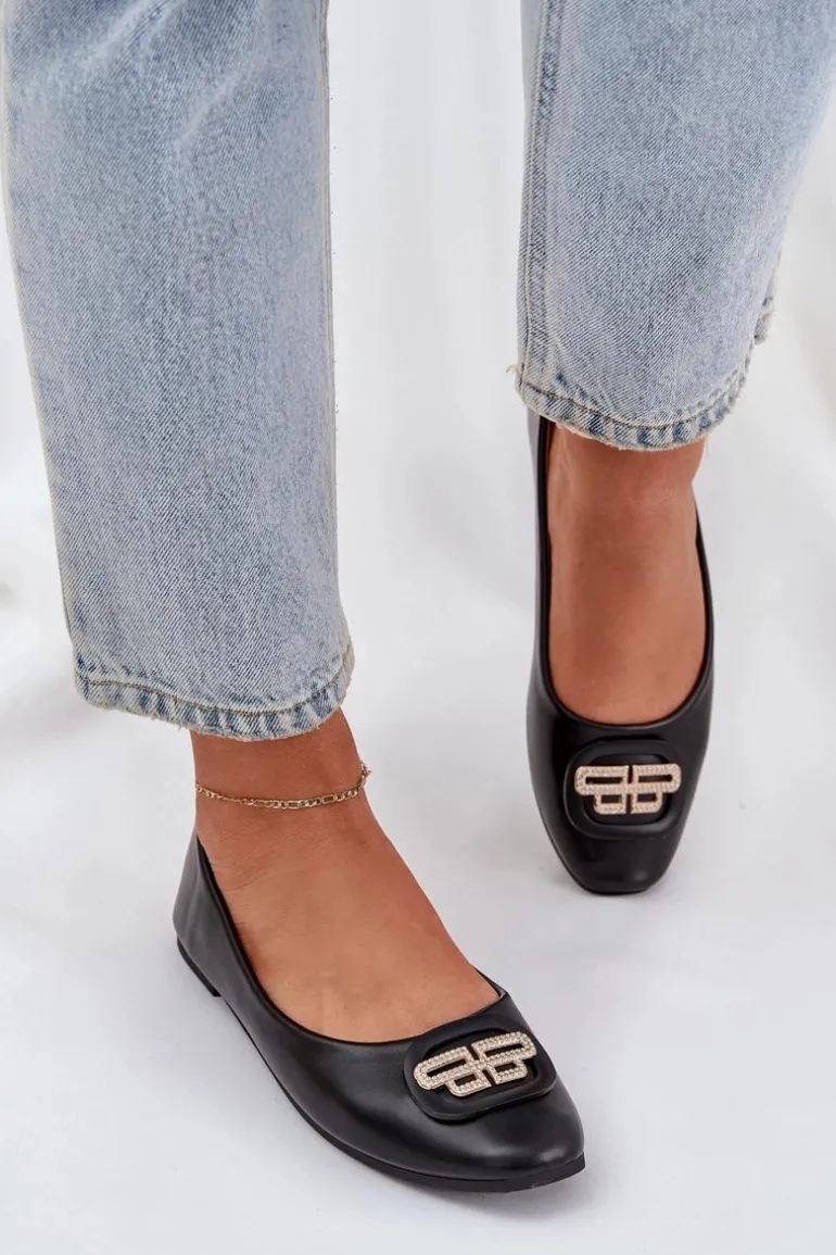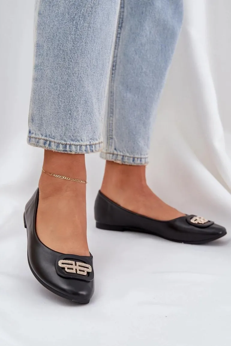 Baleriny Na Płaskiej Podeszwie Z Ozdobą Czarne Ainoria