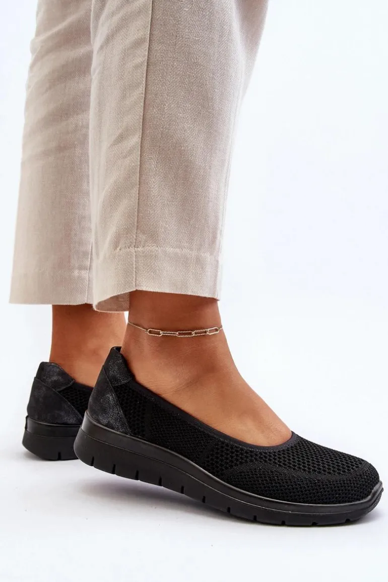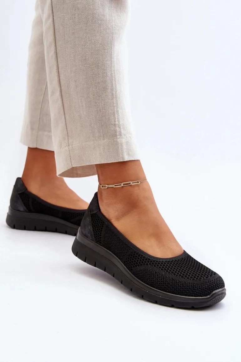 Baleriny damskie wykonane z materiału tekstylnego. Osadzone na platformie wraz z koturnem, co dodaje im subtelnego uroku i stylu. Miękka wkładka ze skóry naturalnej zapewnia niezrównany komfort nawet podczas długich dni. Te baleriny zapewnią Ci poczucie swobody i wygody, które są niezbędne w każdej sytuacji. Przy wyborze rozmiaru prosimy sugerować się tabelą rozmiarów.