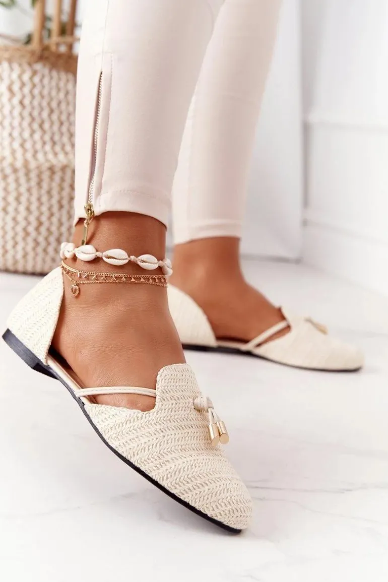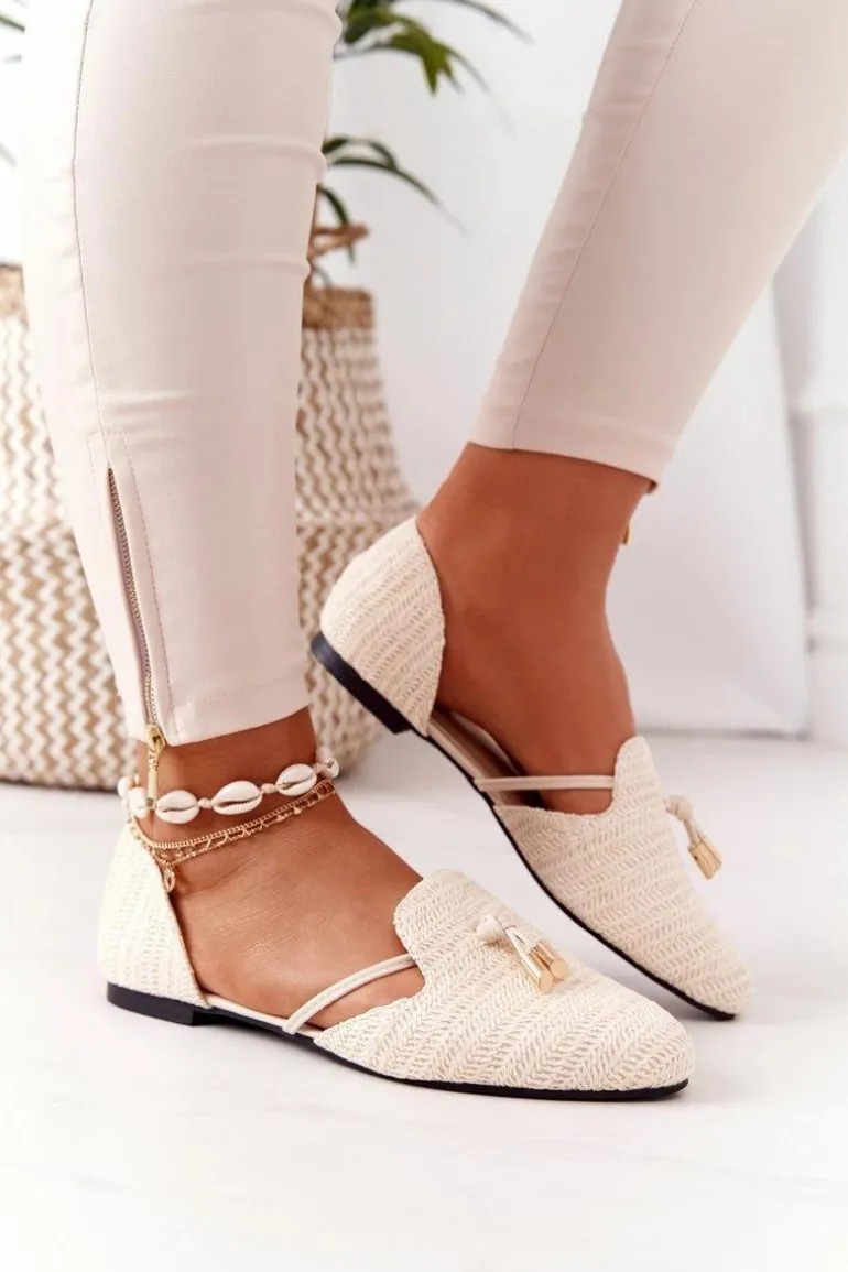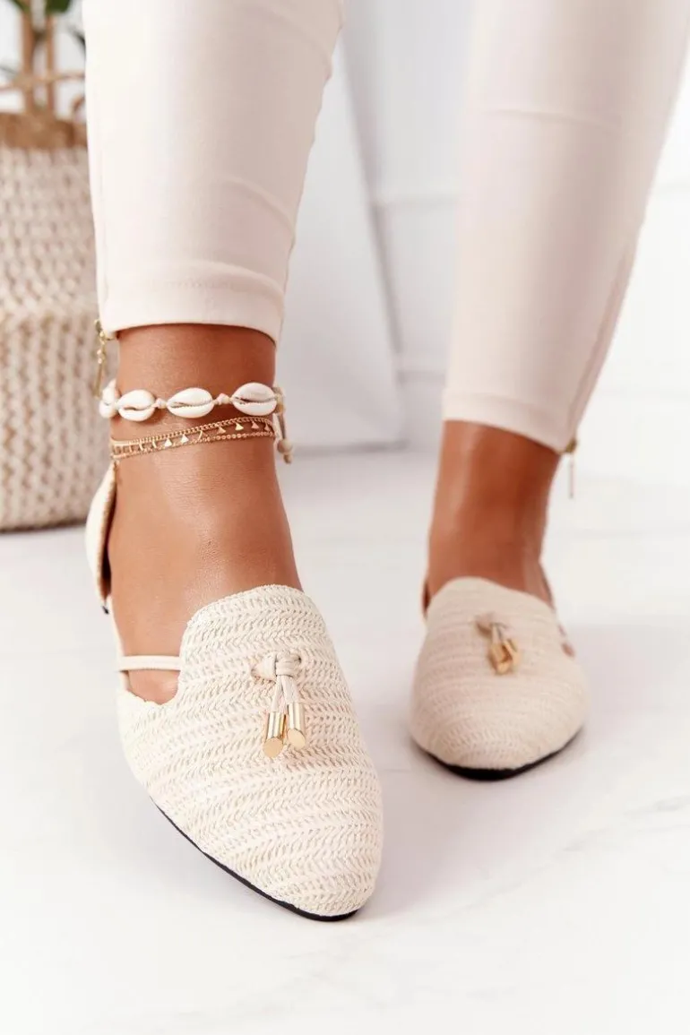 Baleriny W Szpic Z Plecionką Lu Boo Beżowe