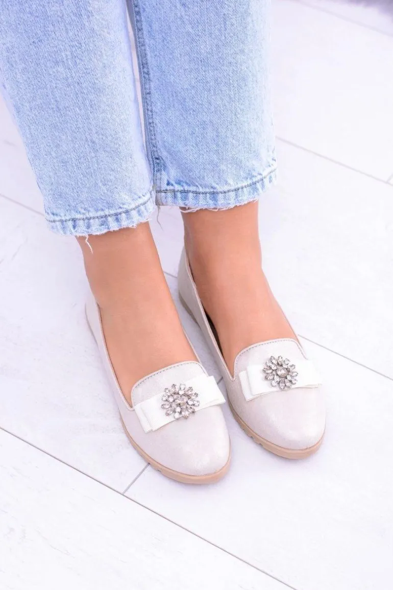 Beżowe Damskie Baleriny Lordsy Cyrkonie Rumi
