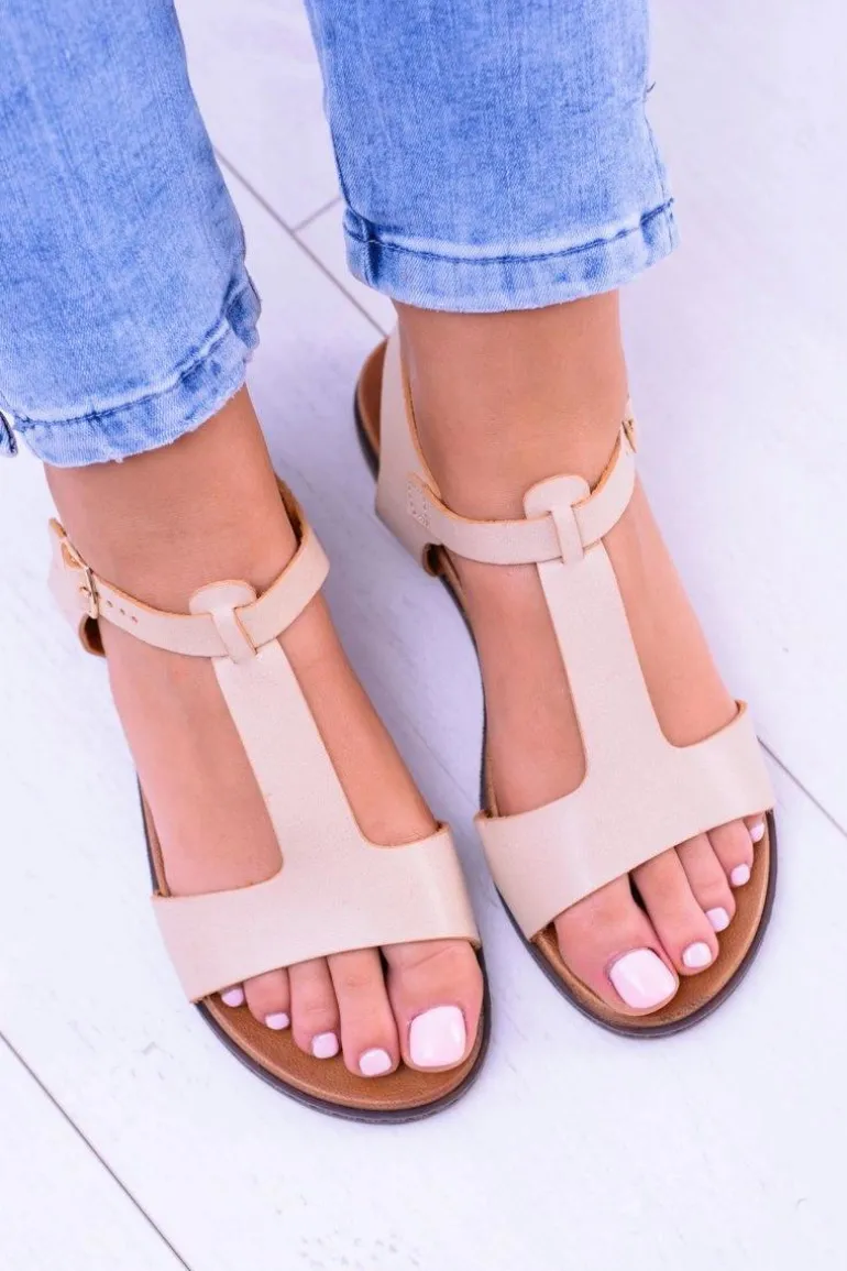Beżowe Damskie Płaskie Sandałki Sunnyside