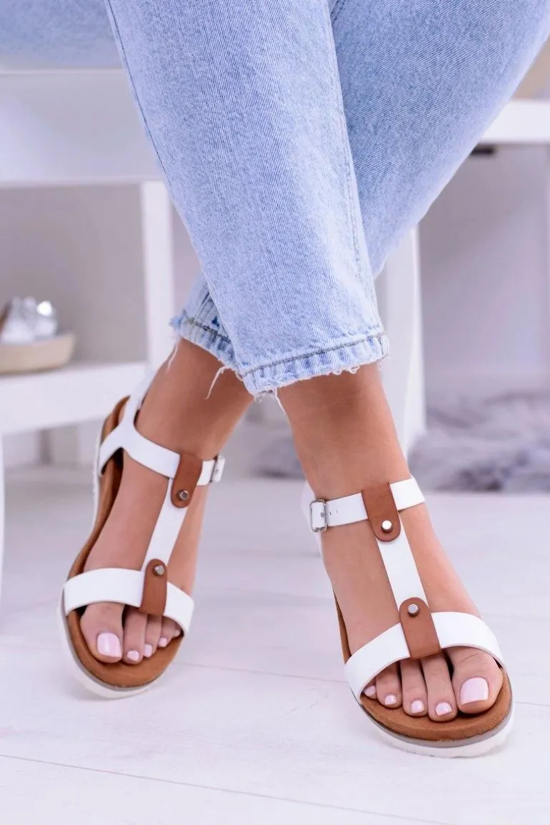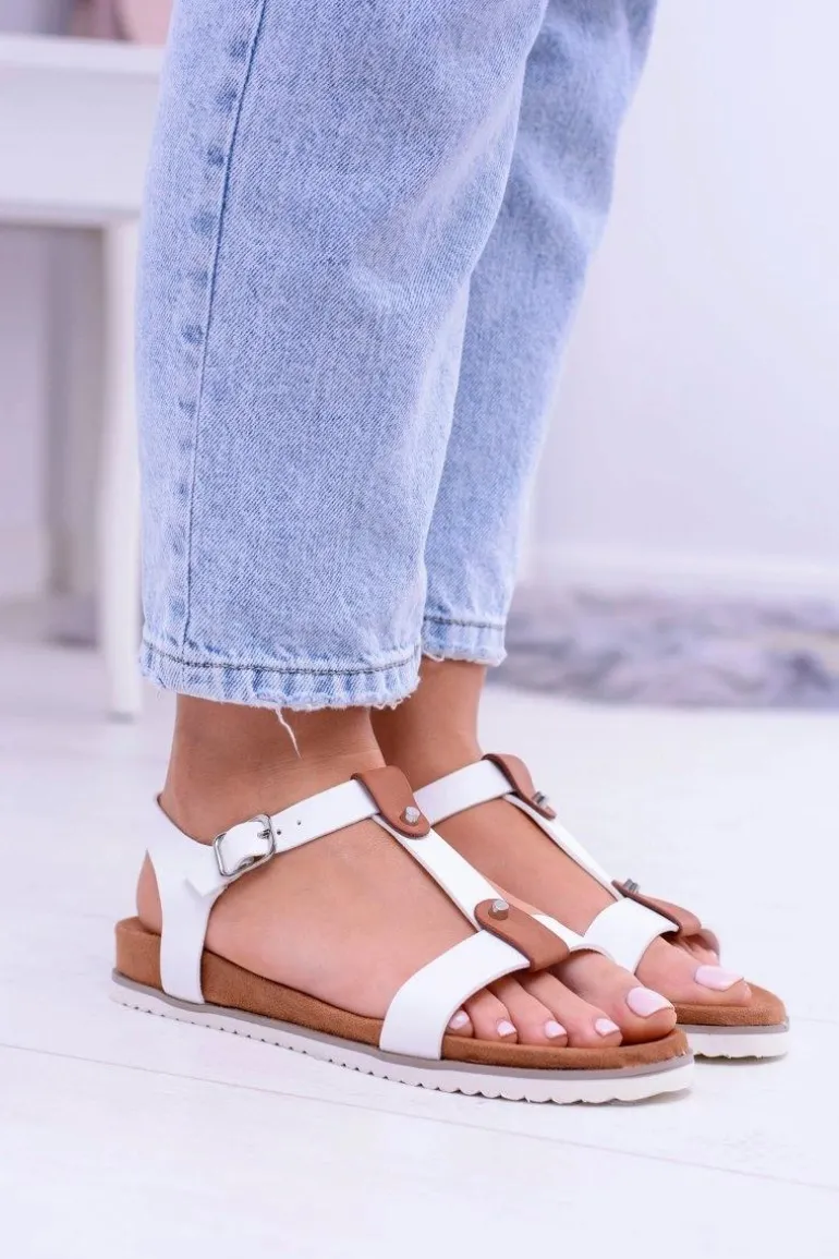 Białe Wygodne Sandały Damskie Płaskie Dubi