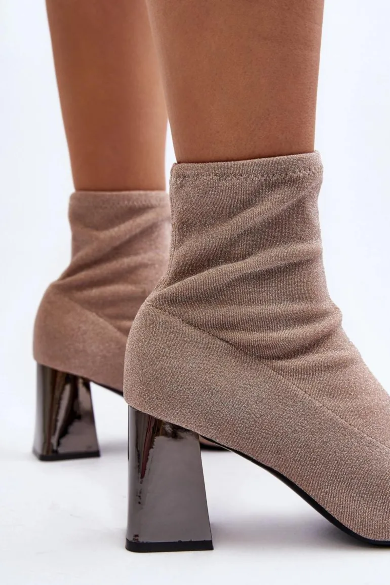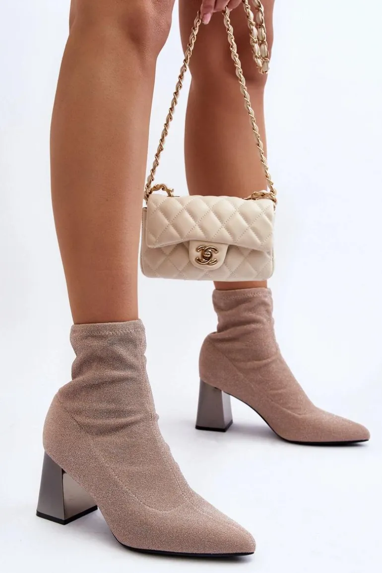 Botki damskie z materiałową cholewką z pewnością sprawdzą się w wielu stylizacjach! Zostały osadzone na obcasie w postaci słupka. Model wsuwany, ozdobiony błyszczącą nicią. Noski w szpic optycznie wysmuklą nogi. Dodatkowo botki posiadają usztywniany zapiętek. Koniecznie musisz je mieć! Przy wyborze rozmiaru prosimy sugerować się tabelą rozmiarów.