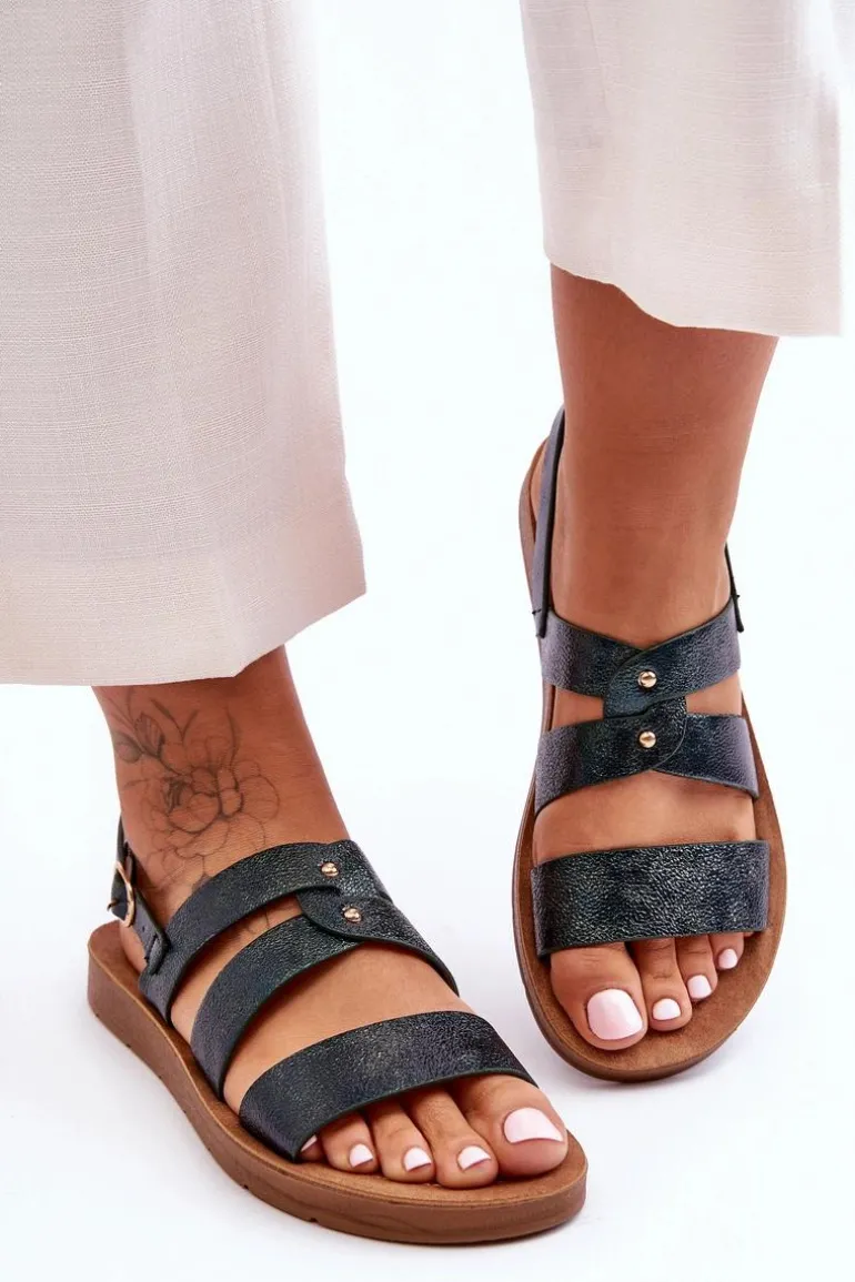 Błyszczące Sandały Damskie Ciemnozielone Catalia