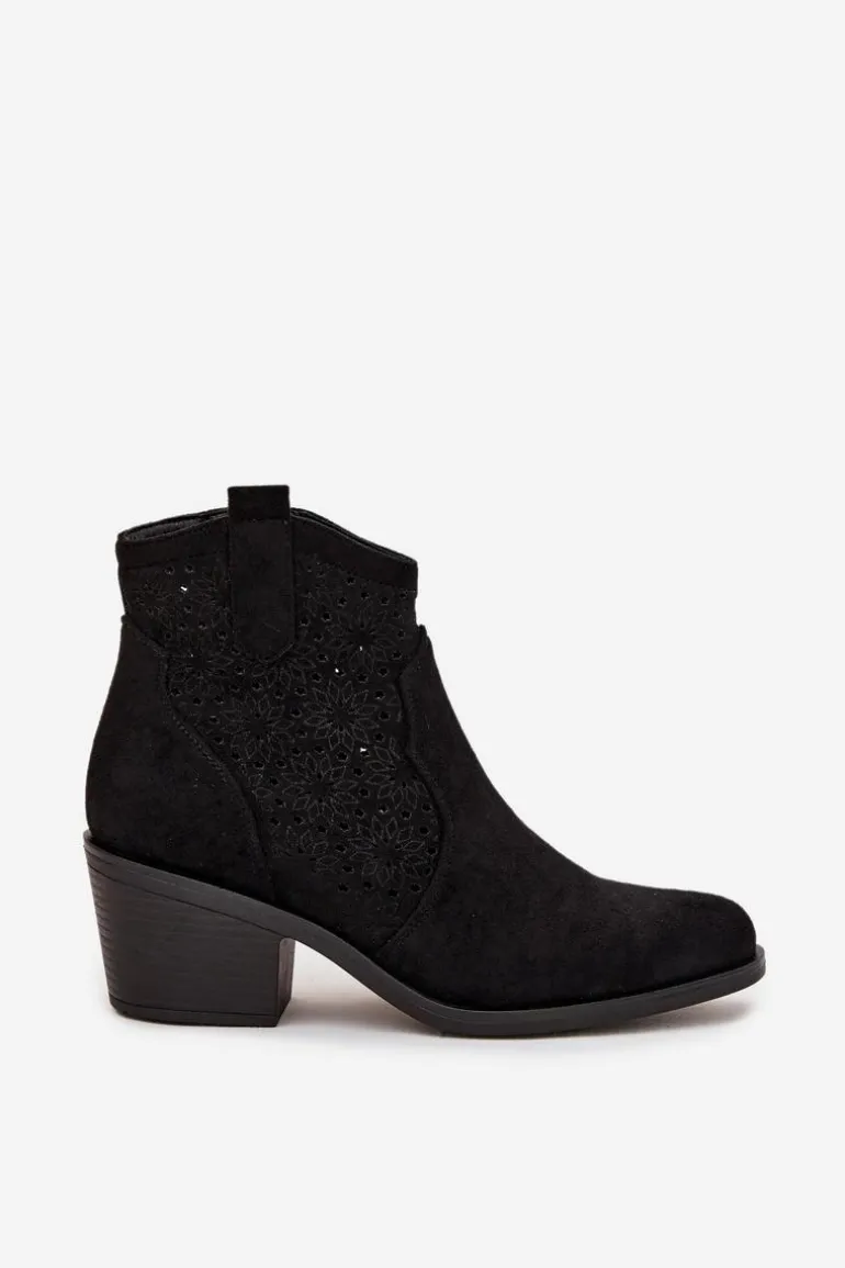 Botki damskie w stylu kowbojek od marki S.Barski to modna propozycja, która świetnie podkreśli charakter jesiennych i wiosennych stylizacji. Wykonane z wysokiej jakości eko zamszu, prezentują się elegancko i są przyjemne w dotyku. Charakterystycznym elementem tego modelu jest ażurowy wzór na cholewce, który nadaje im lekkości, oryginalności i subtelnie wyróżnia je na tle klasycznych kowbojek. Botki zostały osadzone na stabilnym, ściętym obcasie, który zapewnia wygodę podczas chodzenia, a jednocześnie dodaje całości stylowego wykończenia inspirowanego westernowym klimatem. Migdałowe noski optycznie wysmuklają stopę i podkreślają kobiecy charakter butów. To model, który doskonale sprawdzi się zarówno w codziennych, casualowych zestawach, jak i w bardziej wyrazistych stylizacjach z nutą boho. Przy wyborze rozmiaru prosimy sugerować się tabelą rozmiarów.