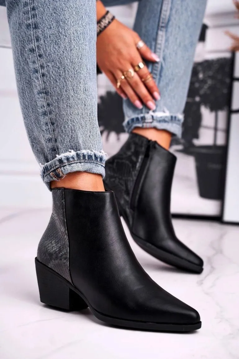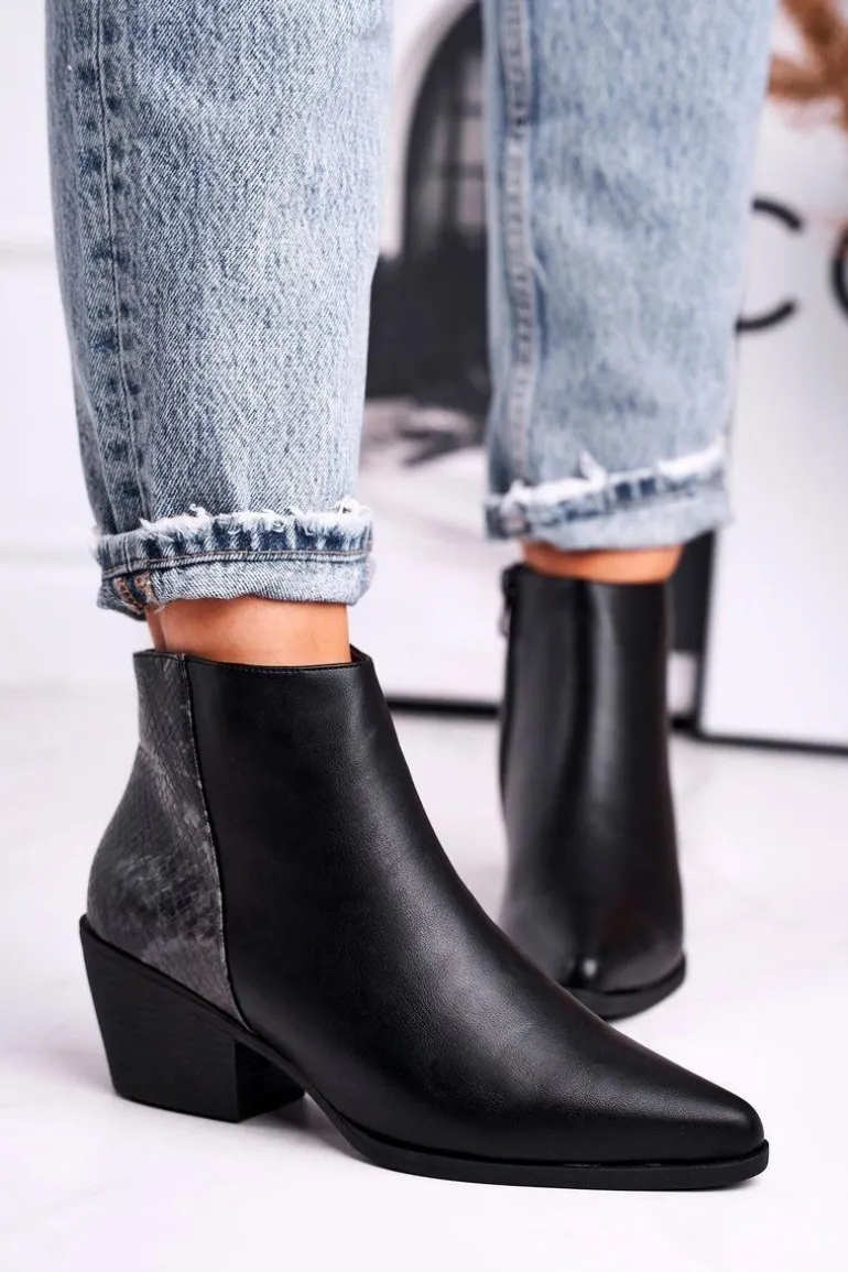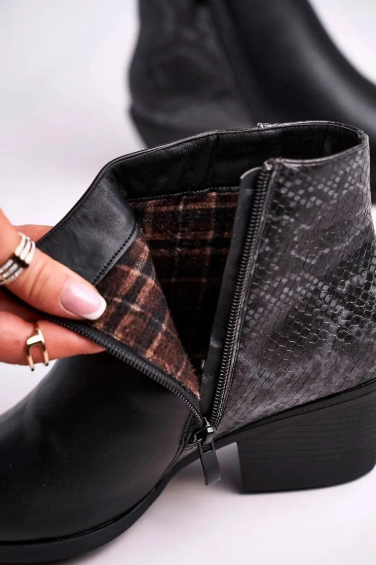 Botki Damskie Ciepłe Czarne Meatown