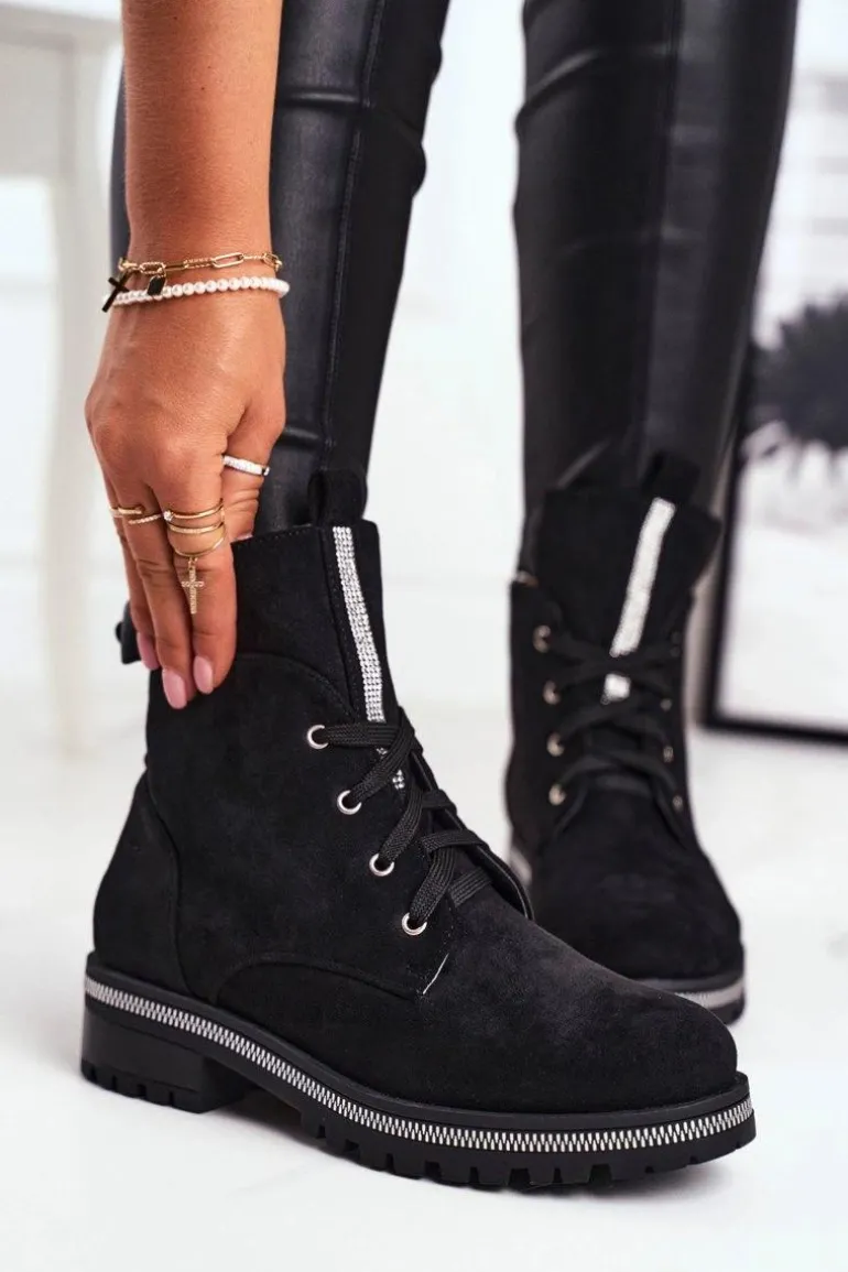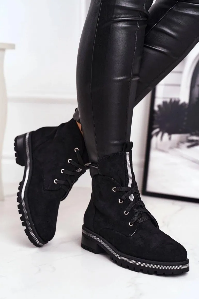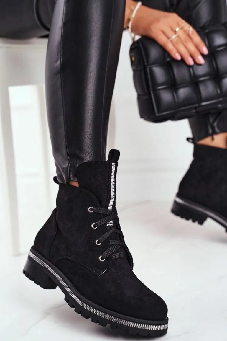Botki Damskie Eko Zamsz Czarne Hundret Percent