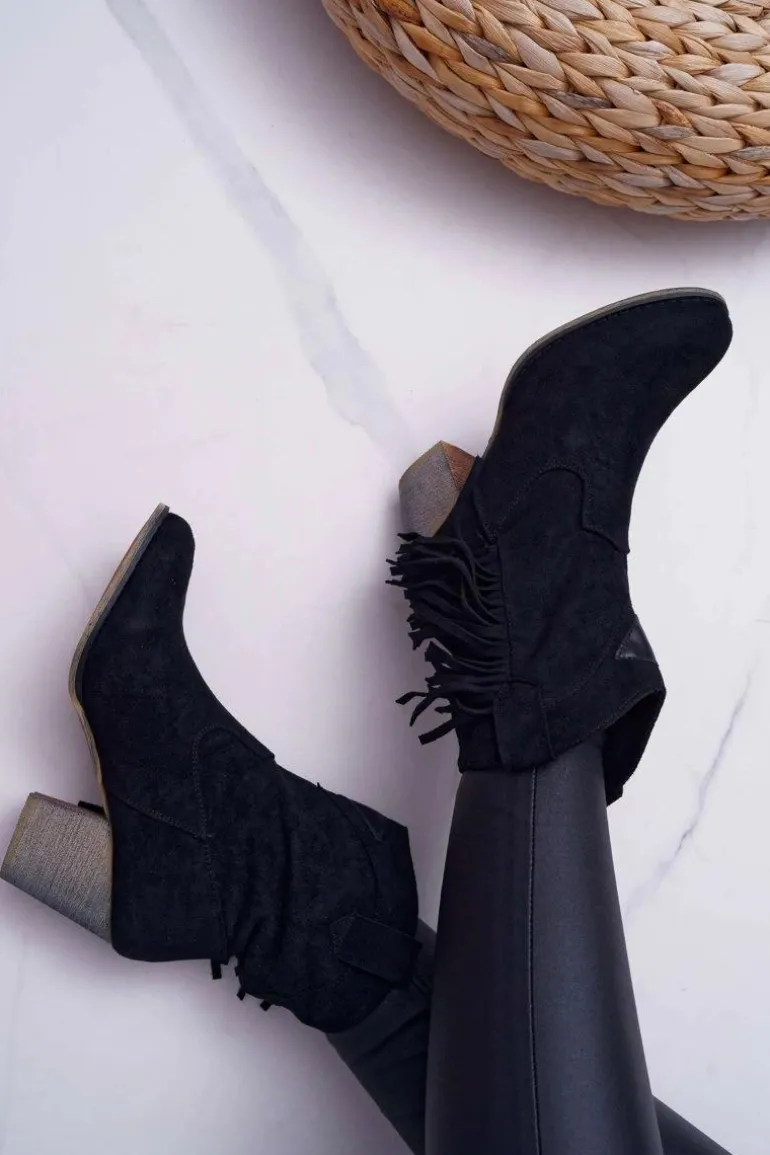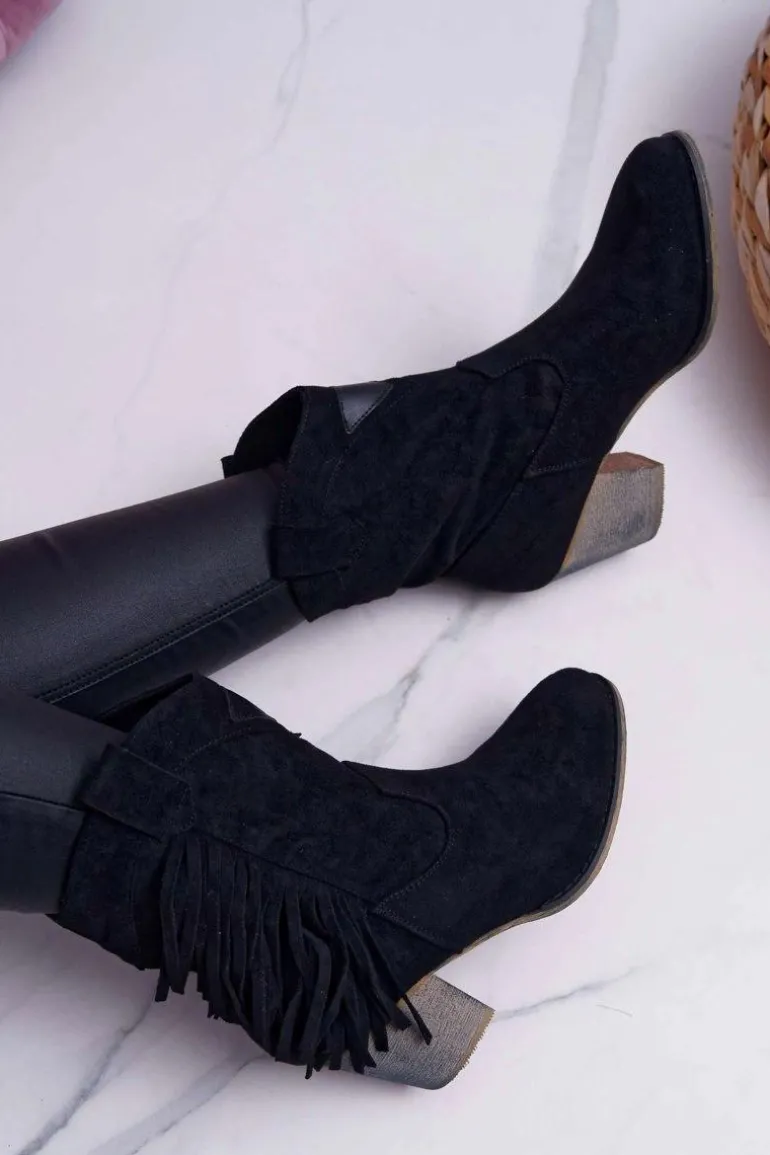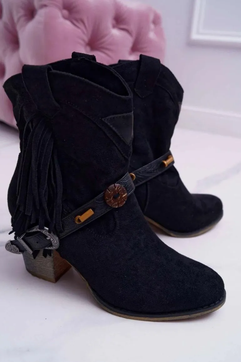 Botki Damskie Kowbojki z Klamrą Czarne Marciapo