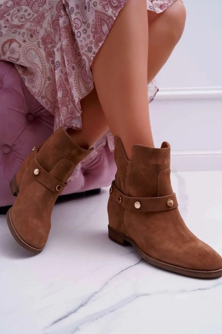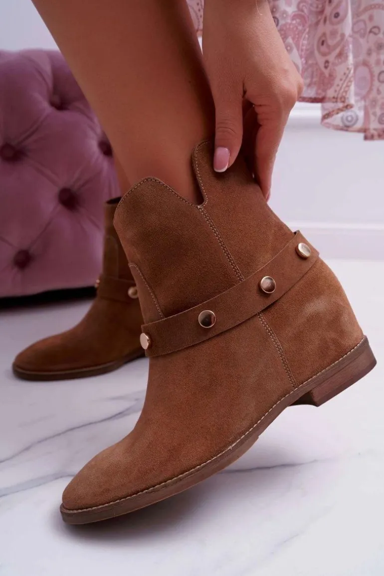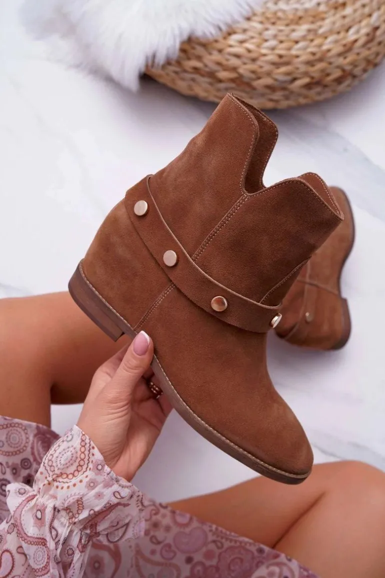 Botki Damskie Laura Messi 1890 Skóra Zamsz Ciemny Camel Darmah