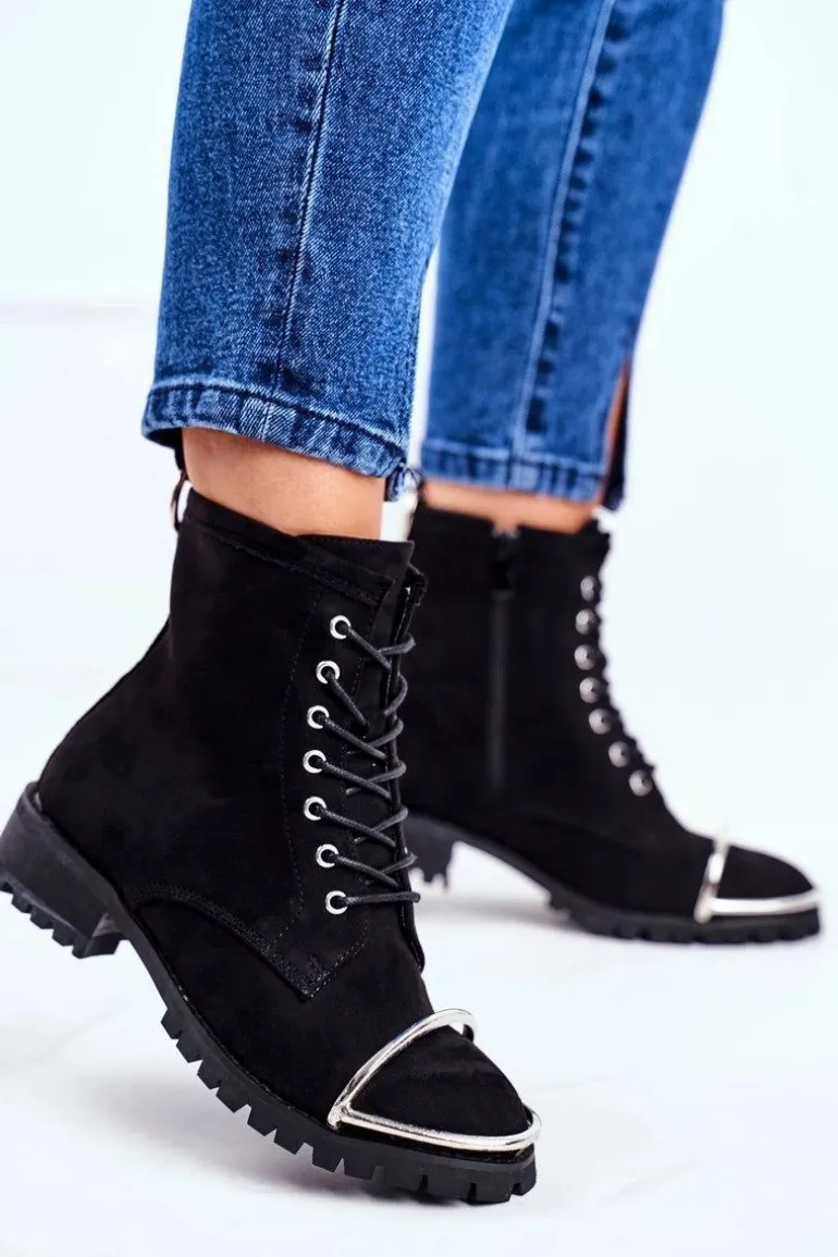 Botki Damskie Lu Boo Czarne Zamszowe Workery ze Stalową Oprawą Jacksy