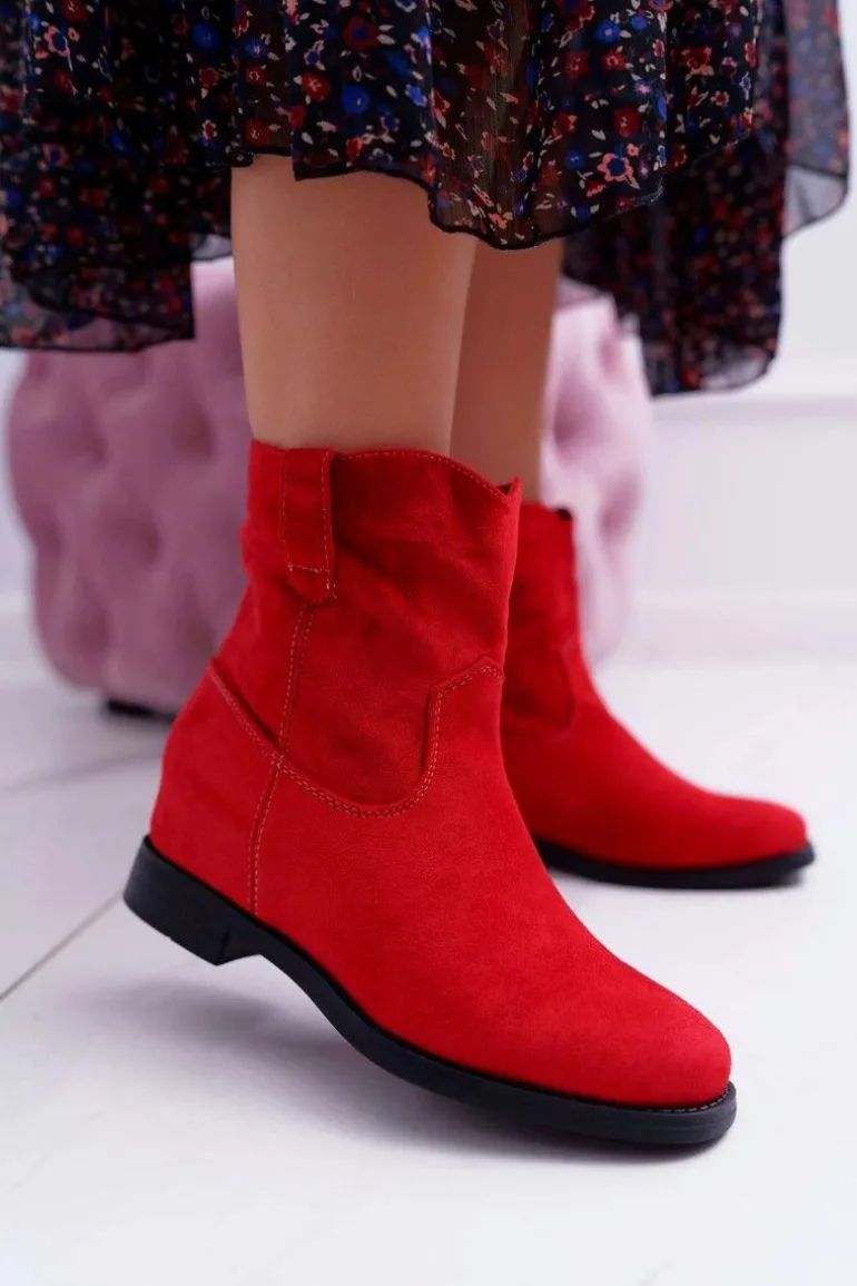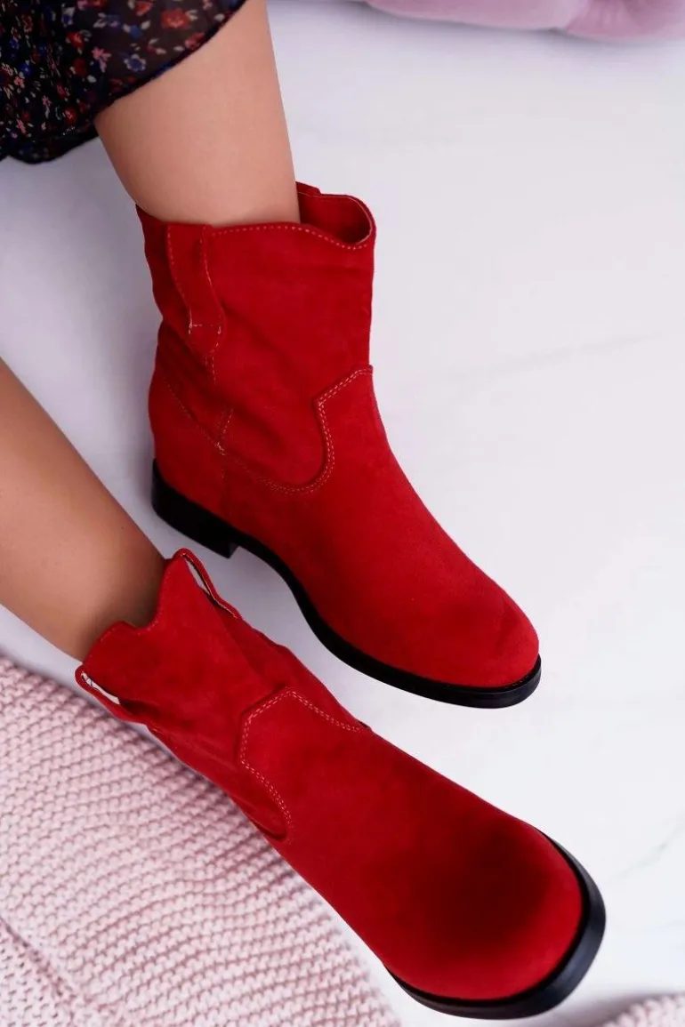 Botki Damskie Na Koturnie Płaski Obcas Ocieplane Za Kostkę Czerwone Demini