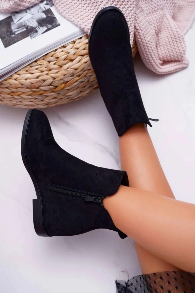 Botki to nie tylko buty na chłodne dni. Świetnie sprawdzą się również podczas tworzenia jesiennych stylizacji. Wierzch wykonany z eko zamszu w pięknym kolorze. Zastosowanie suwaka po wewnętrznej stronie ułatwi zakładanie natomiast wstawka z elastycznej gumki sprawi że będą jeszcze lepiej dopasowane do nogi. Przy wyborze rozmiaru prosimy sugerować się tabelą rozmiarów.
