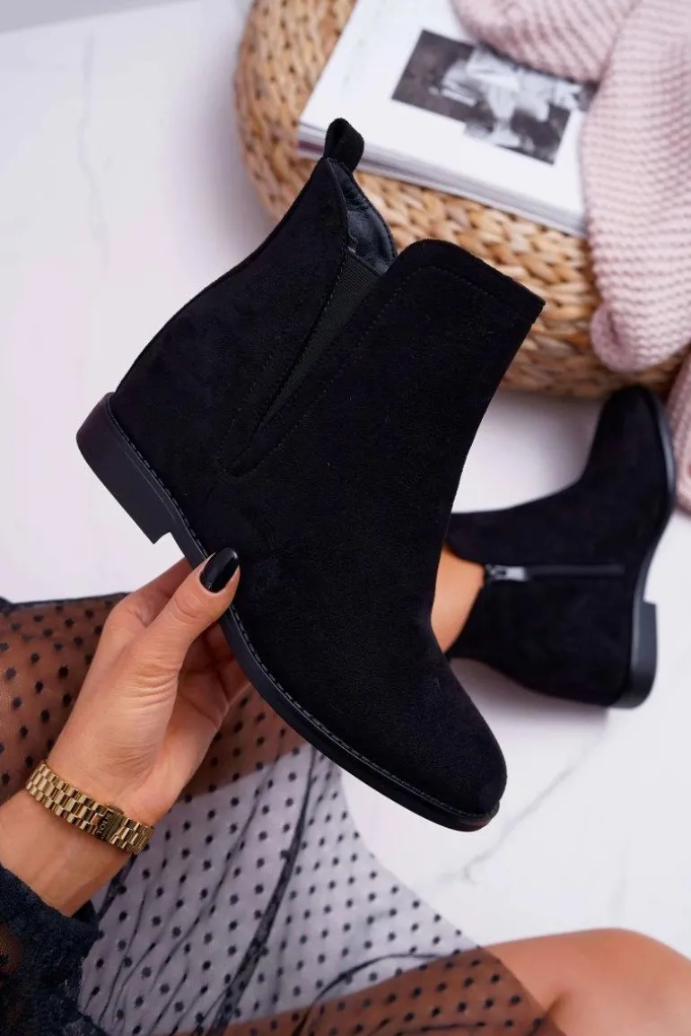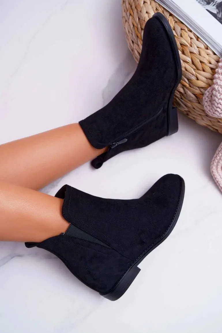 Botki Damskie na Koturnie Zamsz Czarne Tema