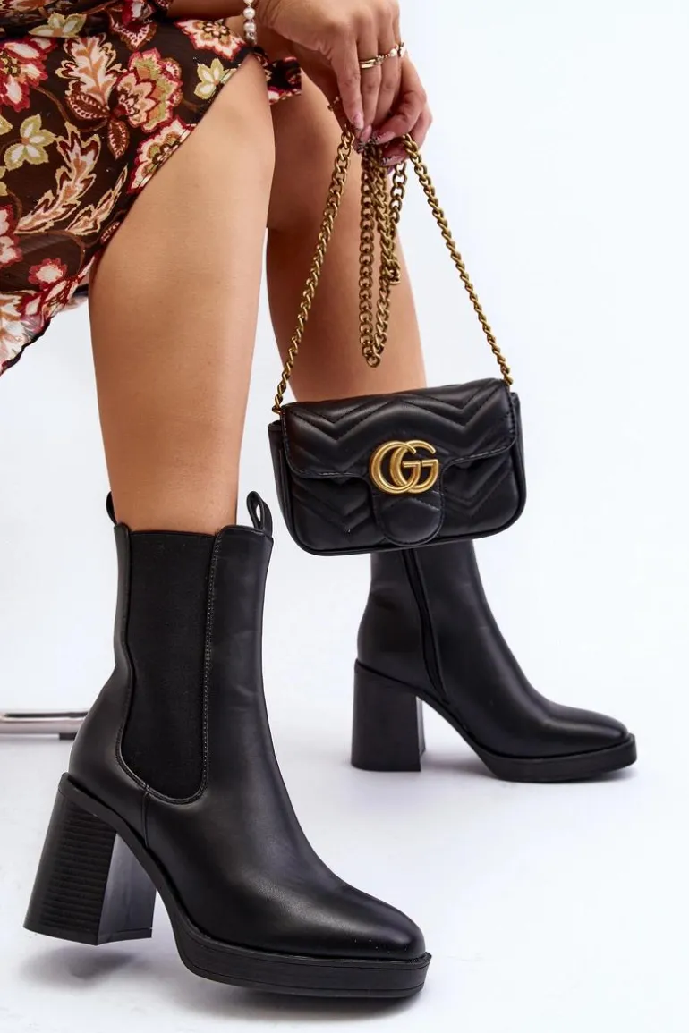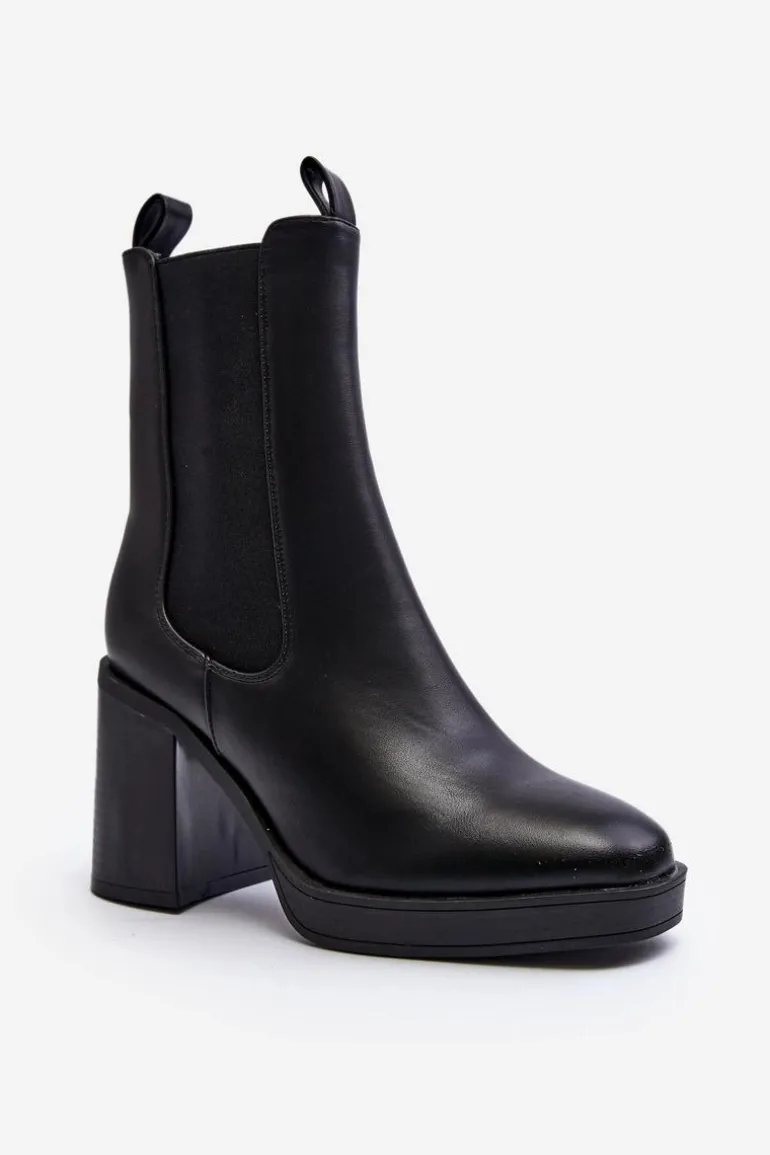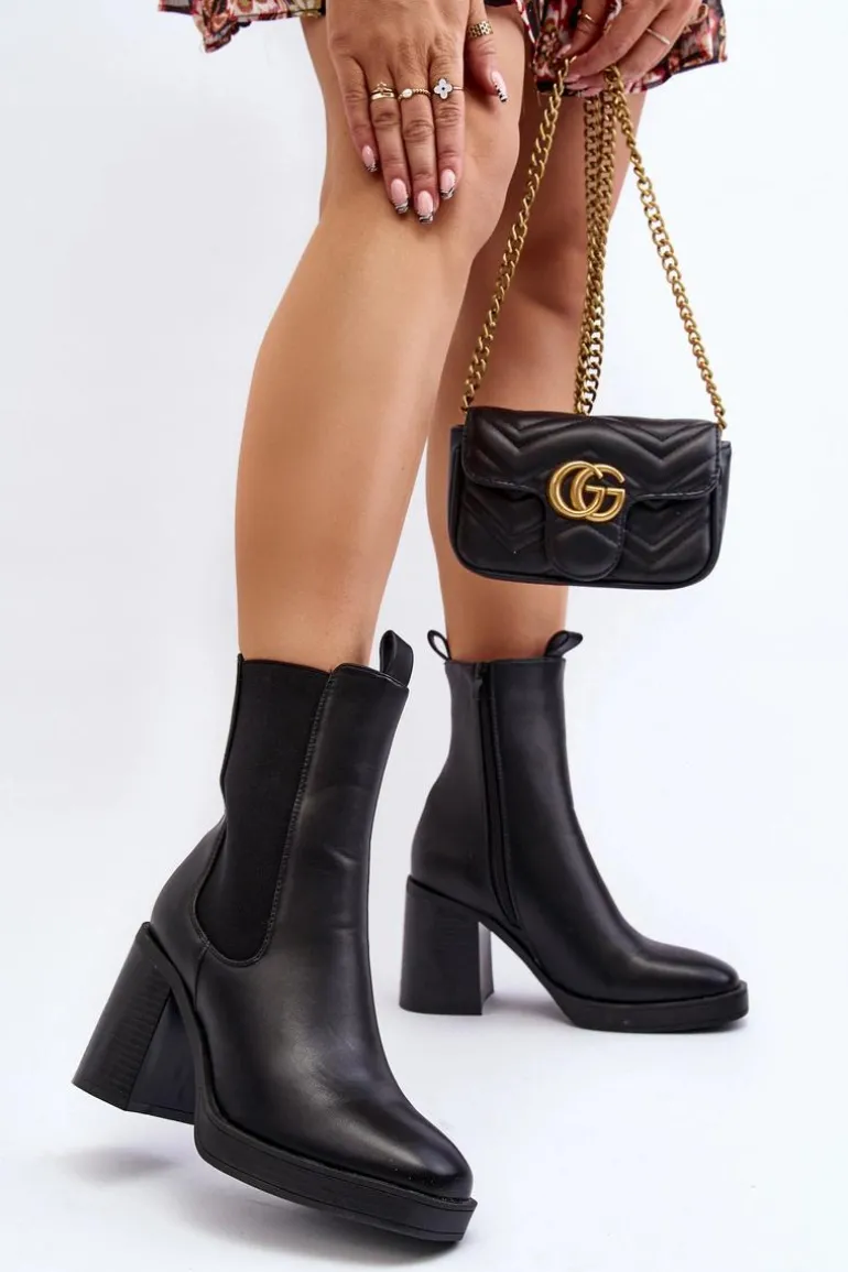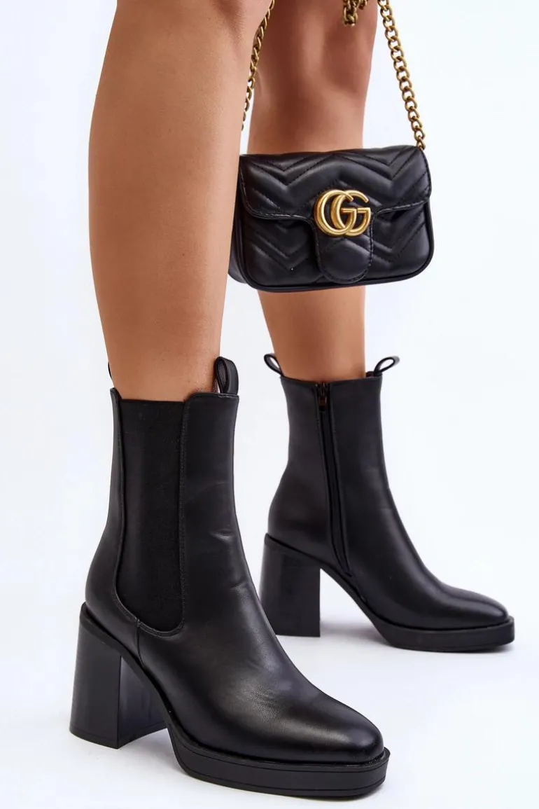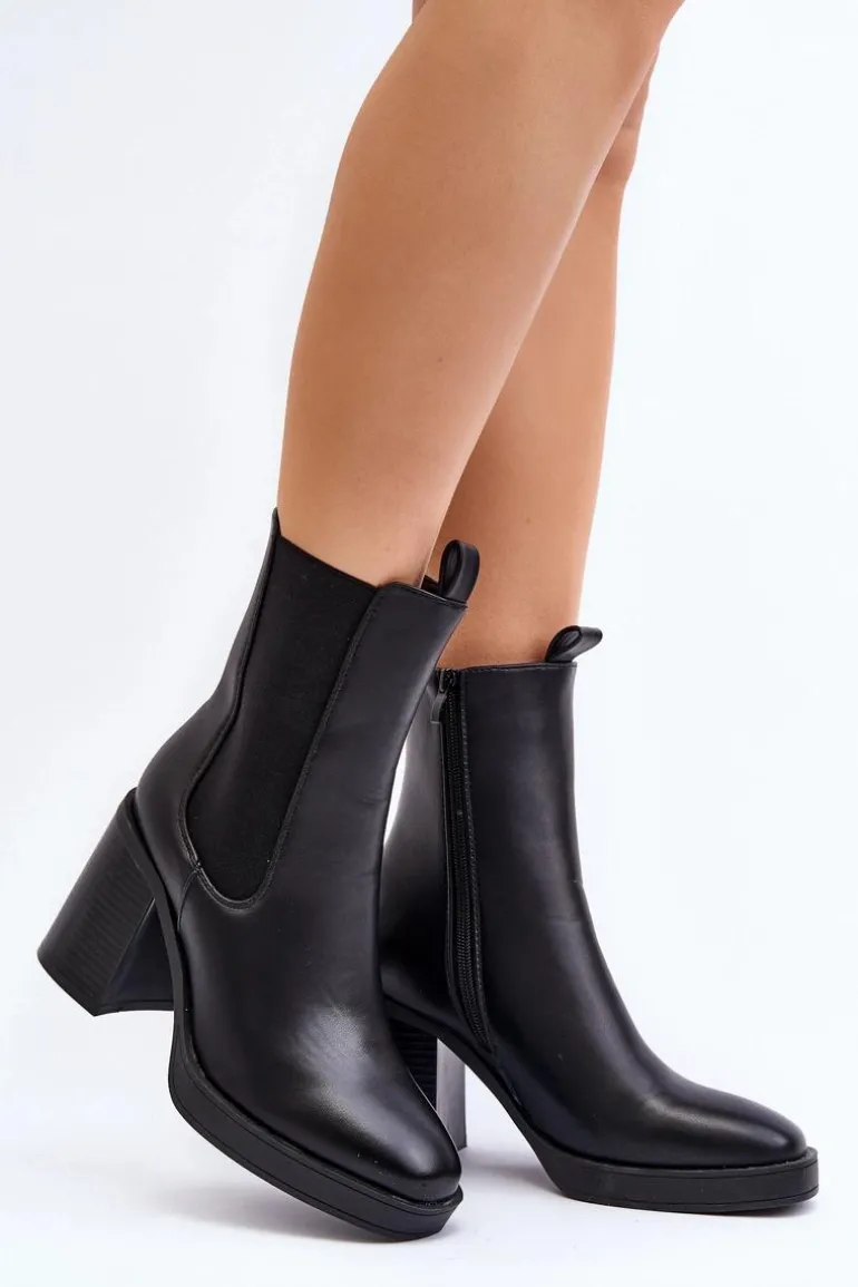 Damskie botki wykonane z eko skóry. Osadzone na masywnym obcasie w postaci słupka. Cholewka za kostkę. Środek ocieplony kocem obuwniczym. Noski zaokrąglone. Model ten zapinany jest suwakiem. Idealne do wielu stylizacji! Przy wyborze rozmiaru prosimy sugerować się tabelą rozmiarów.