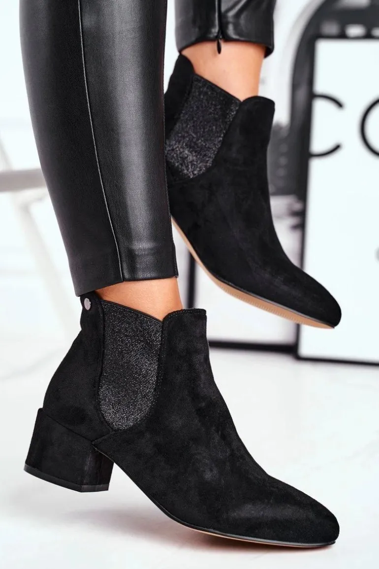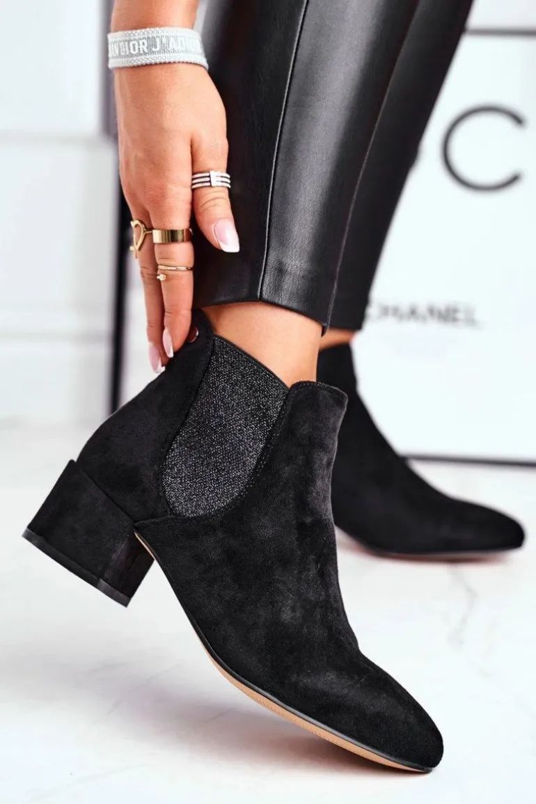 Botki Damskie Na Niskim Słupku Czarne Tersavolle
