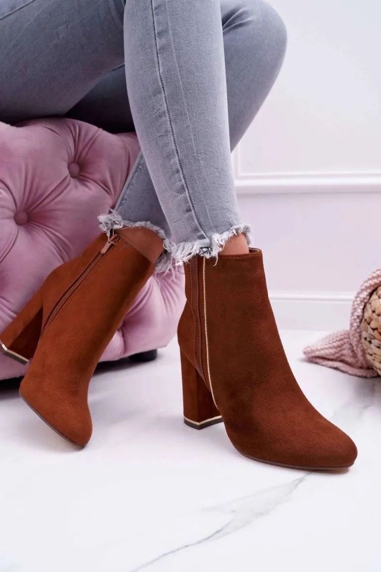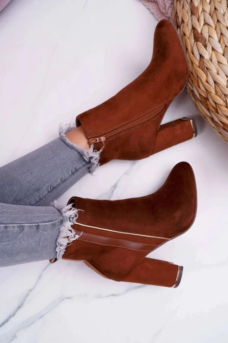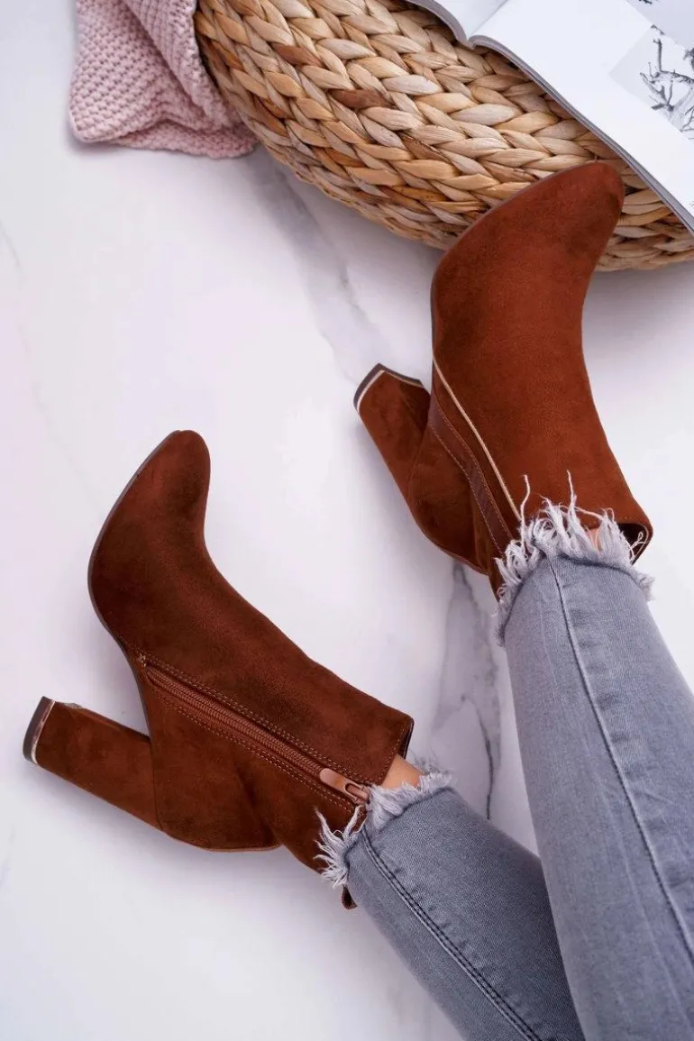 Botki Damskie Na Obcasie Camel Domeno