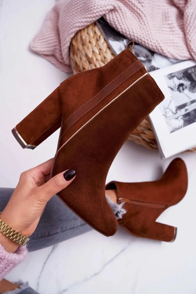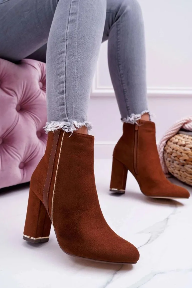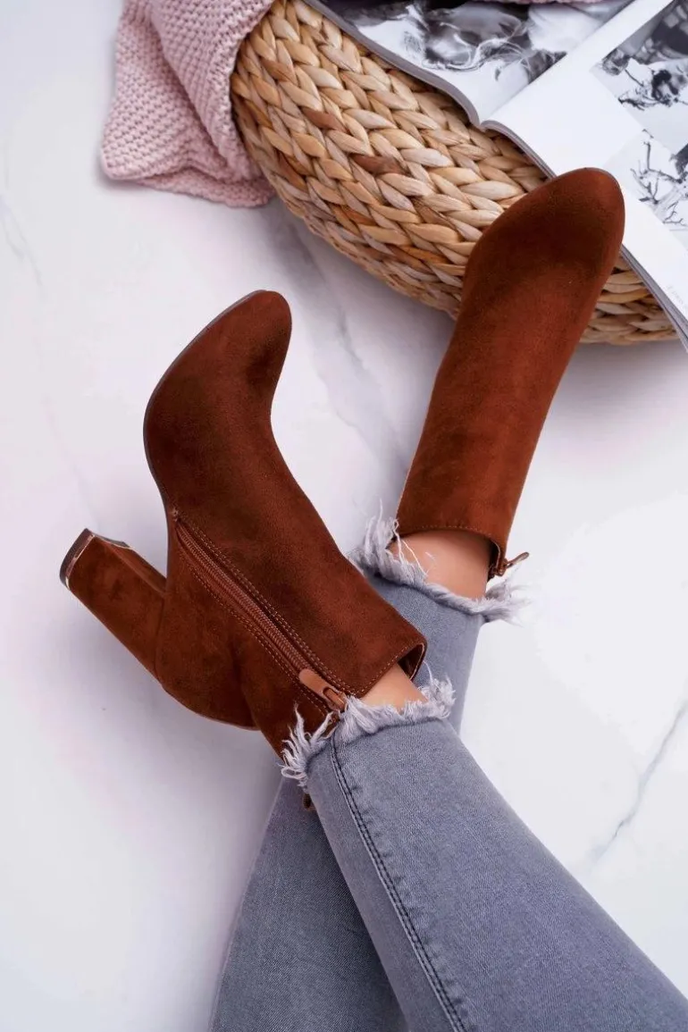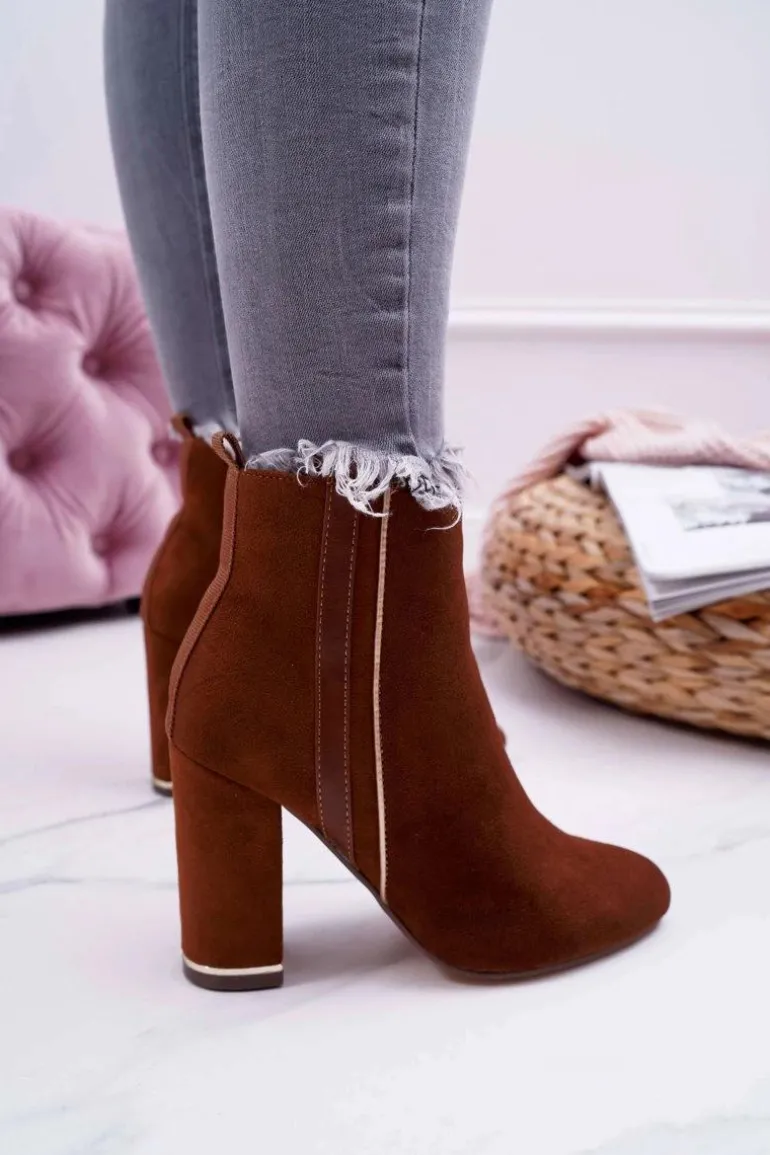 Botki Damskie Na Obcasie Camel Domeno