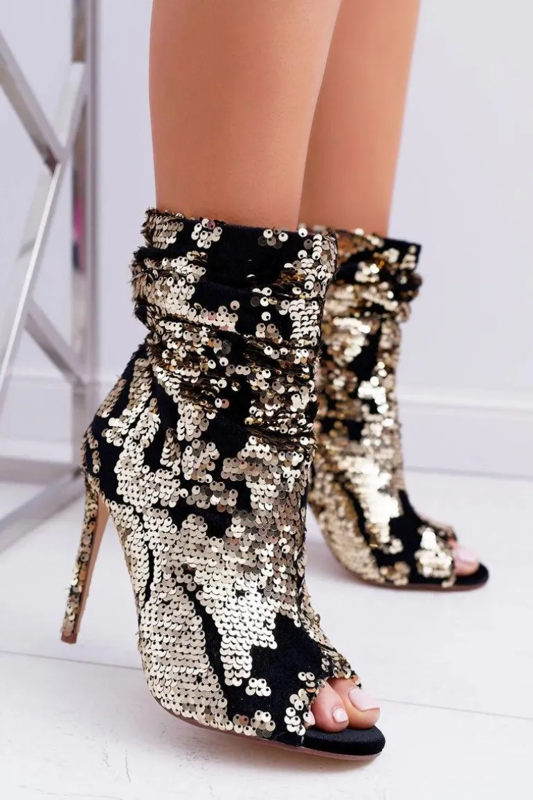 Botki Damskie Na Obcasie Eleganckie z Cekinami Złote Harley