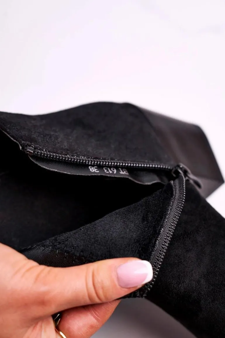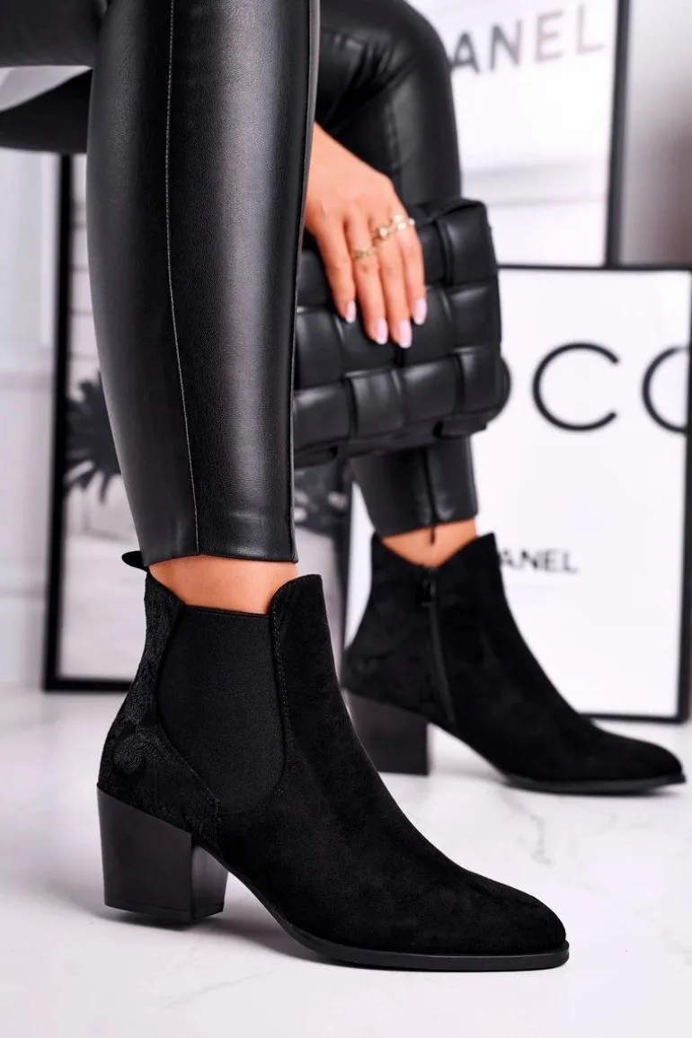 Botki Damskie Na Obcasie Sergio Leone Zamszowe Czarne BT613
