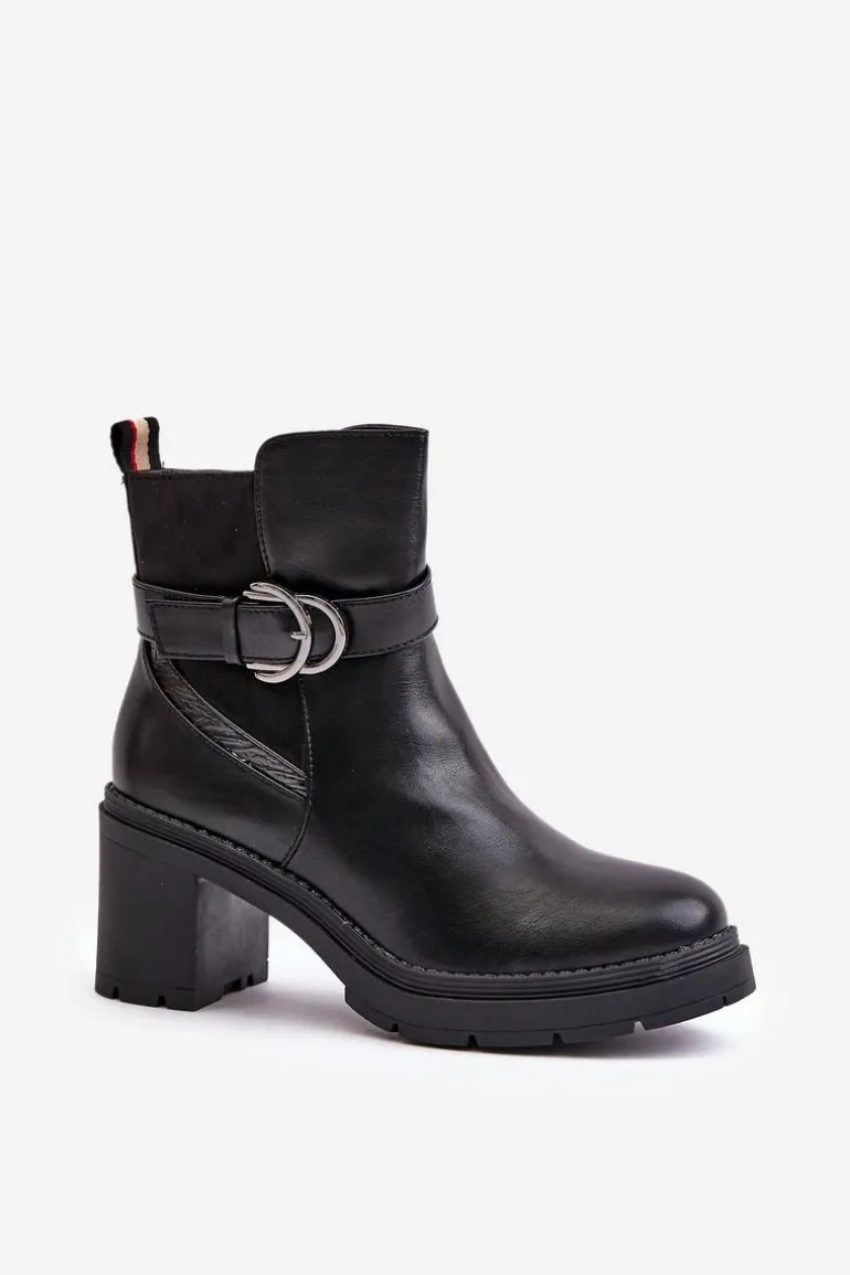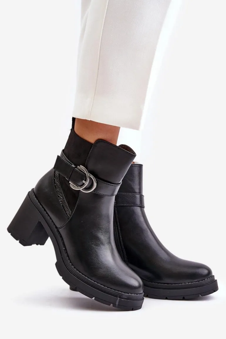 Ocieplane botki to idealny wybór na chłodniejsze dni. Wykonane ze skóry ekologicznej. Osadzone na obcasie w formie słupka. Noski zaokrąglone. Zapinane na zamek, co ułatwi zakładanie i zdejmowanie obuwia. Środek ocieplany kocem obuwniczym. Model ten wyróżnia się paskiem ze złotą klamrą. Koniecznie powinnaś je mieć! Przy wyborze rozmiaru prosimy sugerować się tabelą rozmiarów.