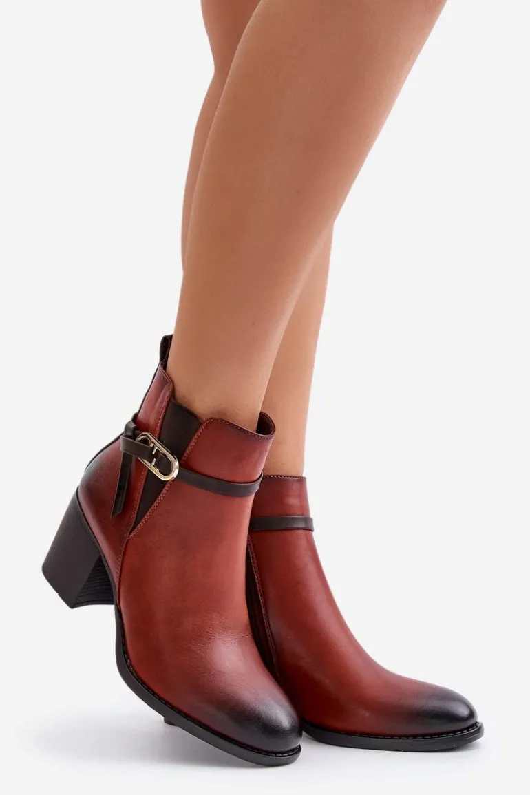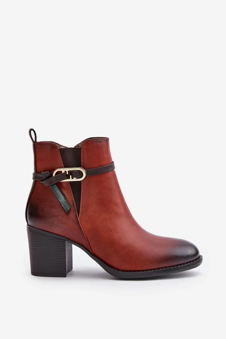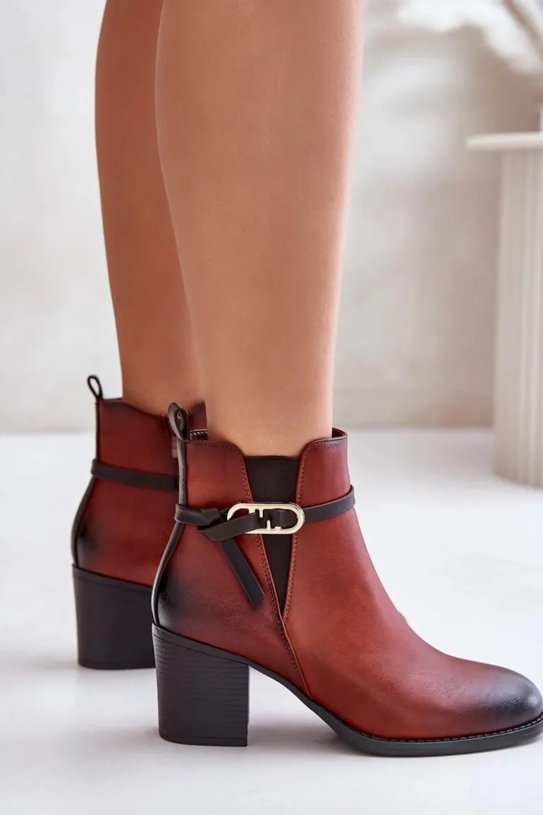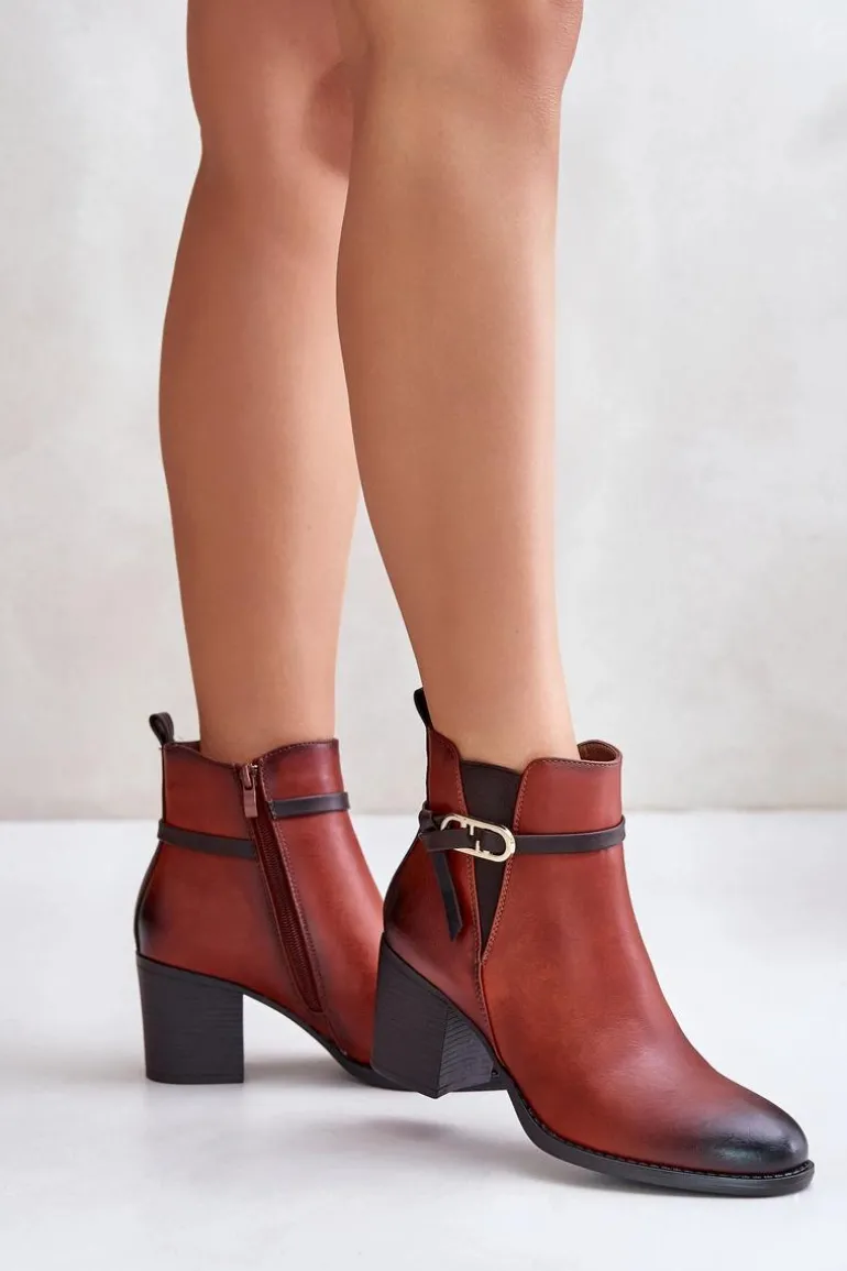 Damskie botki od marki Jezzi. Wykonane z eko skóry. Osadzone na obcasie w formie słupka. Noski zaokrąglone. Środek ocieplany kocem obuwniczym. Na cholewce pasek, który nadaje elegancji. Zapinane na zamek. Modne i wygodne, te botki to must-have w Twojej garderobie! Przy wyborze rozmiaru prosimy sugerować się tabelą rozmiarów.
